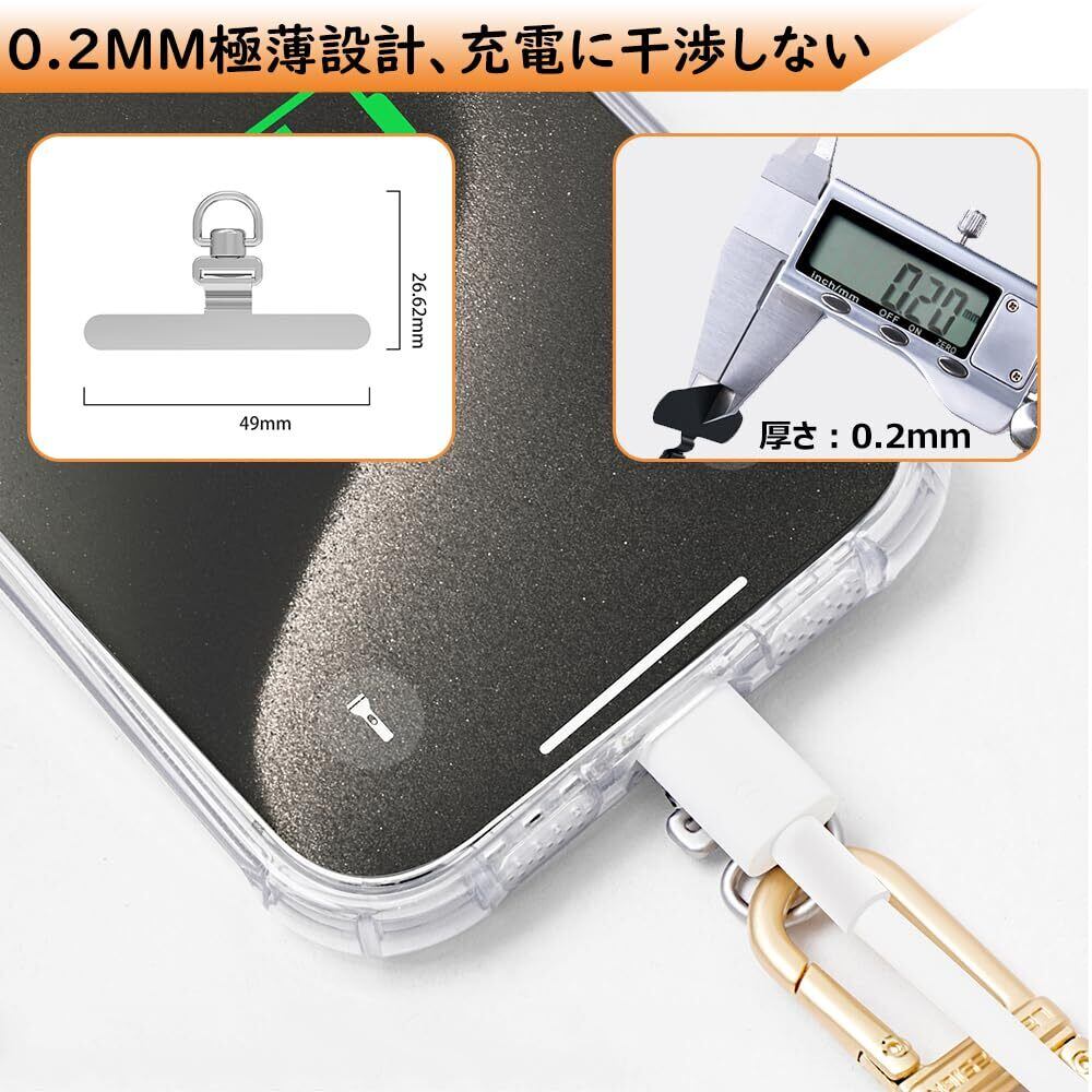 【数量限定】スマホ ストラップホルダー 【極薄0.2mm・360°旋回式・浮きなし曲がれ設計】金属製タグパッチ ステンレス鋼 メッキ仕上げ 携帯ストラップホルダー 薄型 丈夫10kgまでの荷重量 スマホケースに挟む 全機種対応 充電影響なし 落下紛失防止 (F)