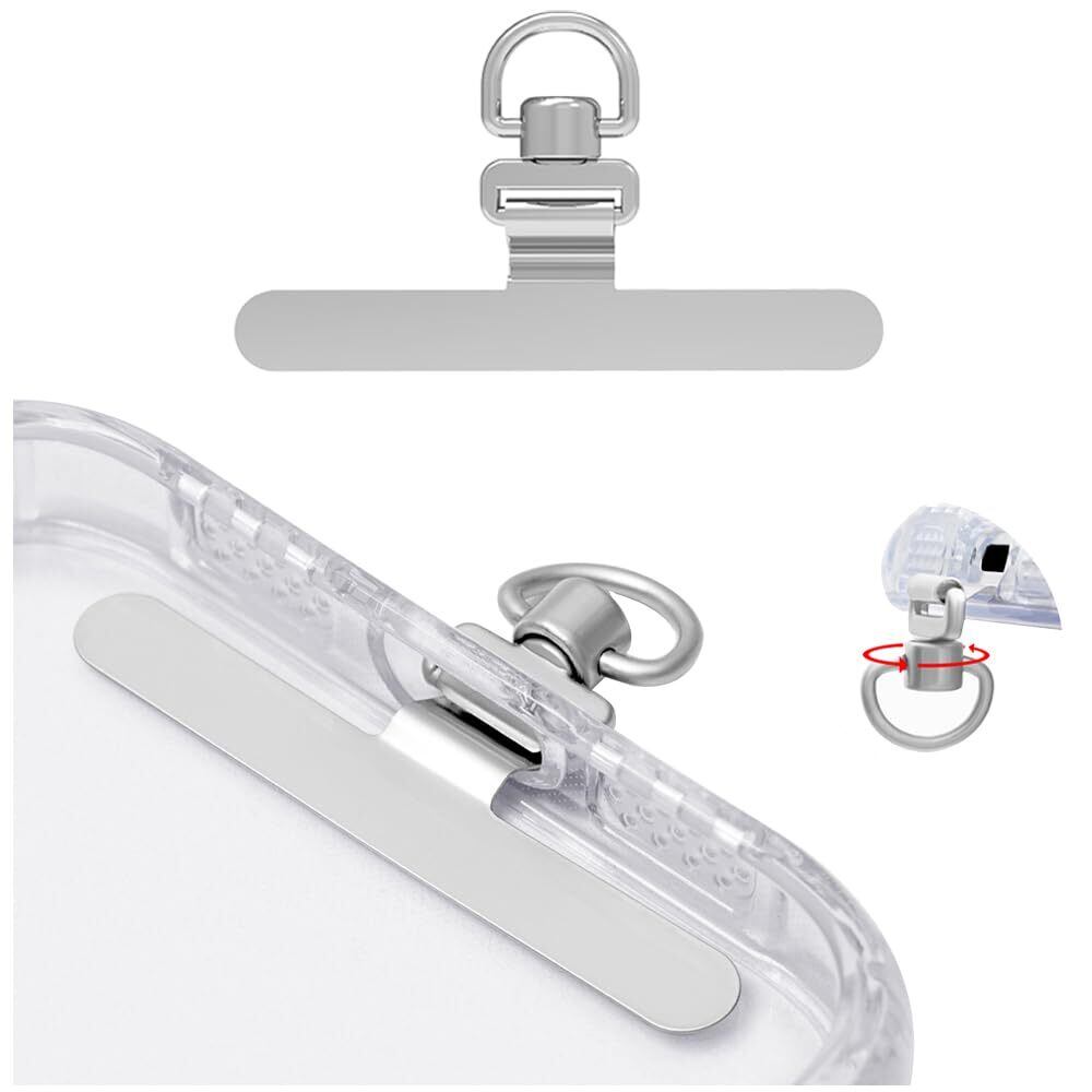 スマホ ストラップホルダー 【極薄0.2mm・360°旋回式・浮きなし曲がれ設計】金属製タグパッチ ステンレス鋼 メッキ仕上げ 携帯ストラップホルダー 薄型 丈夫10kgまでの荷重量 スマホケースに挟む 全機種対応 充電影響なし 落下紛失防止 (F)