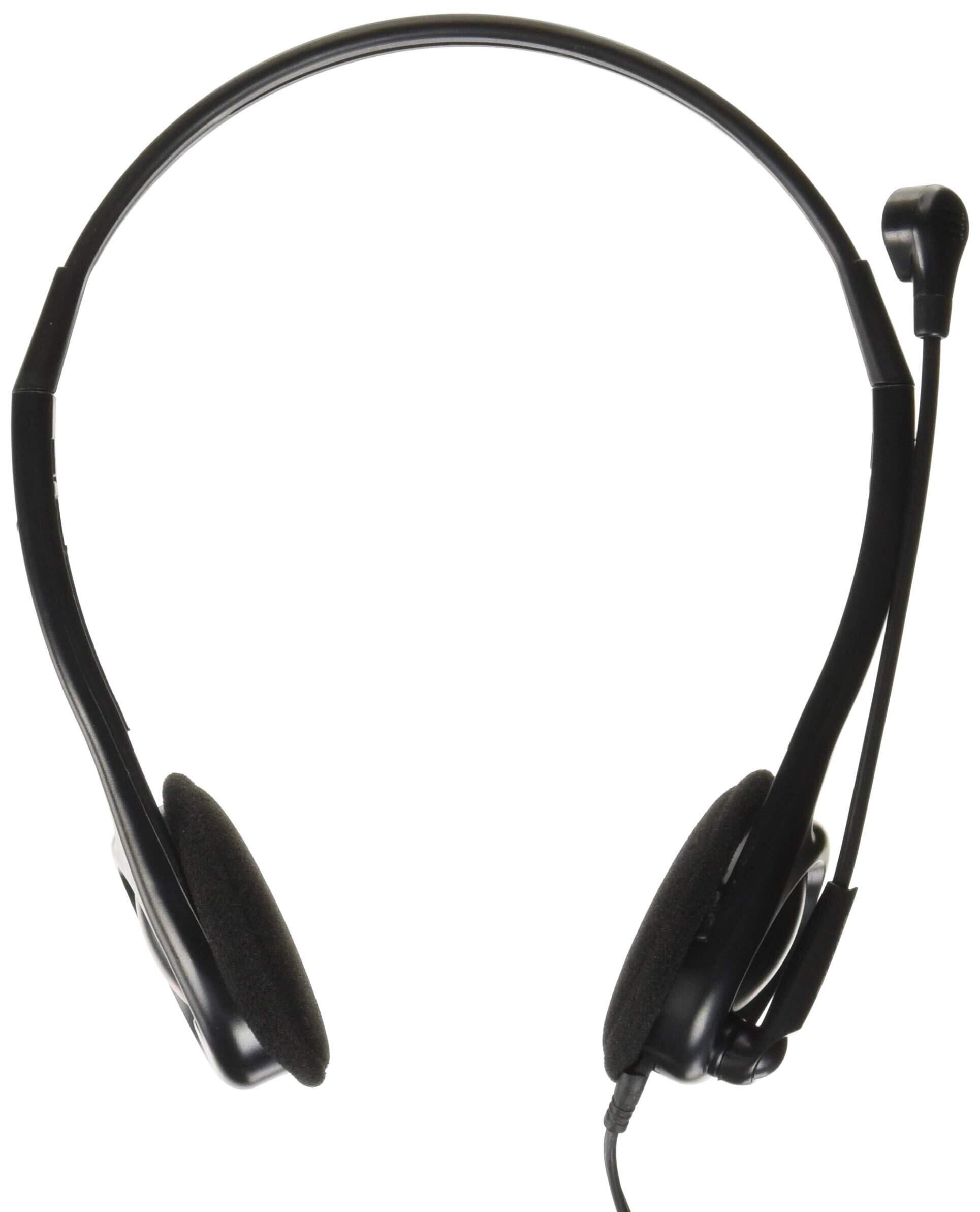 スマートフォンや最新型パソコンで使える4極ミニプラグ接続の両耳ヘッドバンド式ヘッドセット