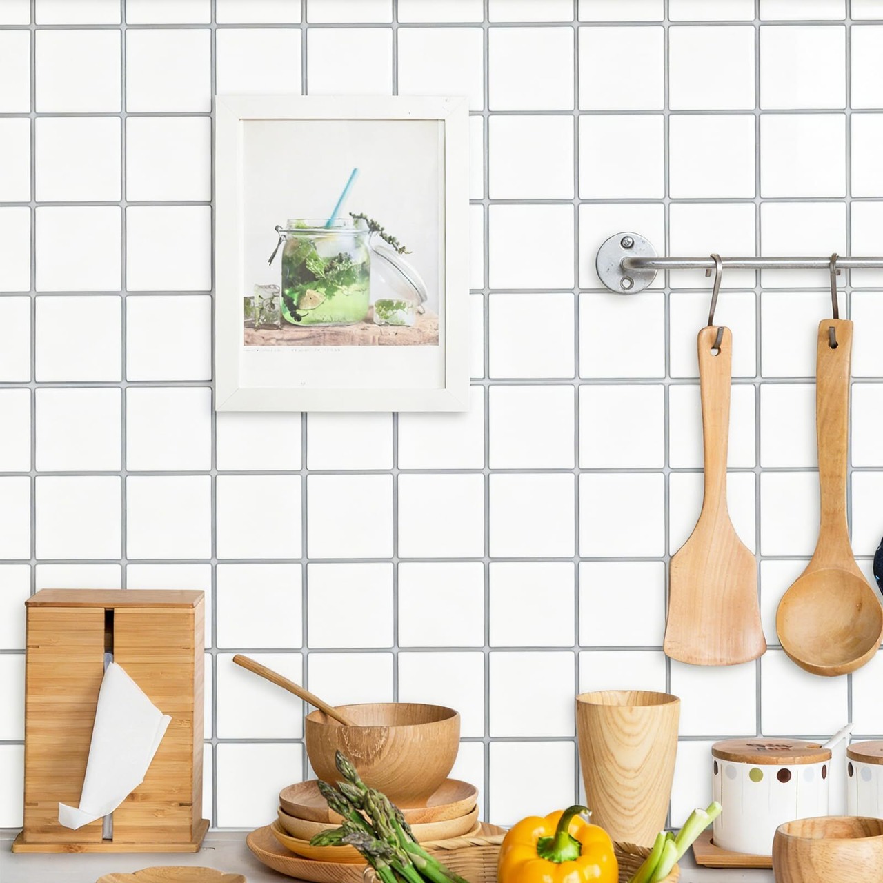 【在庫処分】タイルシール 3D 立体 壁紙シール レンガ調 防水耐熱 剥がせる DIY リメイクシート キッチン 洗面所 壁面 トイレ 家具装飾用 モザイクタイル柄 賃貸 模様替え 簡単取付 (ホワイト, 25 x 25cm 4枚) | allstore3