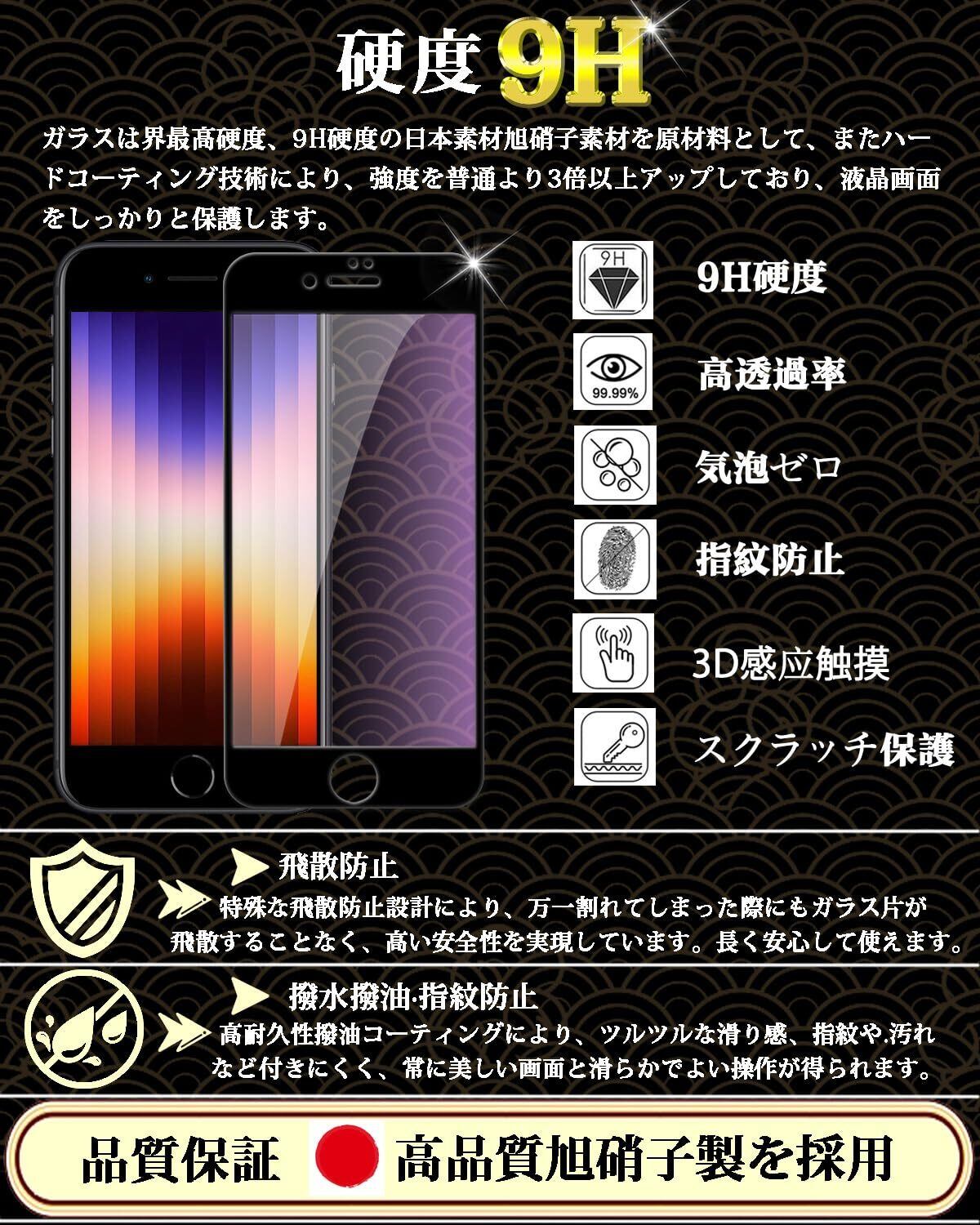 対応 iPhone SE3/SE2/8/7 ガラスフィルム ブルーライトカット iPhone SE2 ガラスフィルム 目を守る 全面保護フィルム【専用貼り付けガイド枠付き】硬度9H 貼り付け簡単 気泡防止 自動吸着 撥水撥油 指紋防止 飛散防止SE3/SE2/iPhone8/7 液晶強化ガラス (1枚)