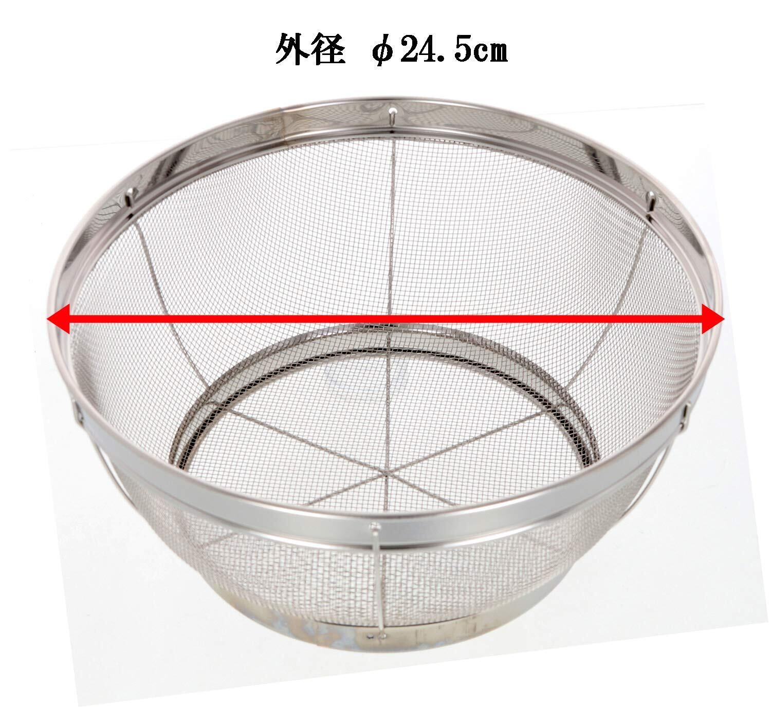 この深型ザルは、サイズ25cmと扱いやすい大きさで、家庭のキッチンにぴったり!ザルの編み目が細かいため、小さな食材も逃さずしっかりと水切りができます。料理の幅が広がること間違いなしです!