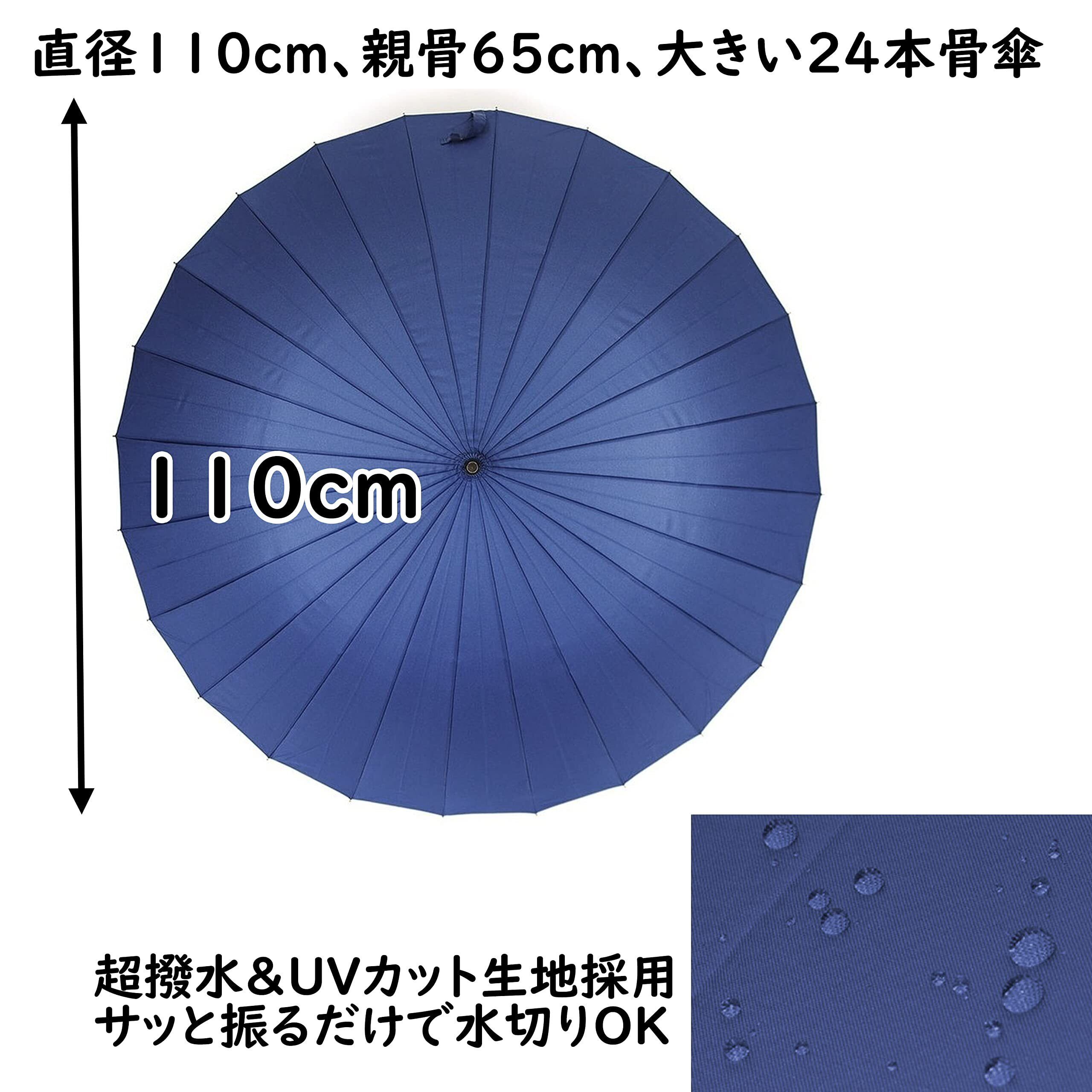 長傘 雨傘 メンズ 24本骨傘 大きい 65cm 和傘 軽量 耐風 グラスファイバー骨 立てかけやすい 滑りにくい 便利 ラバー先端 ネイビー 紺 (親骨65cm 直径110cm) 撥水 UVカット生地