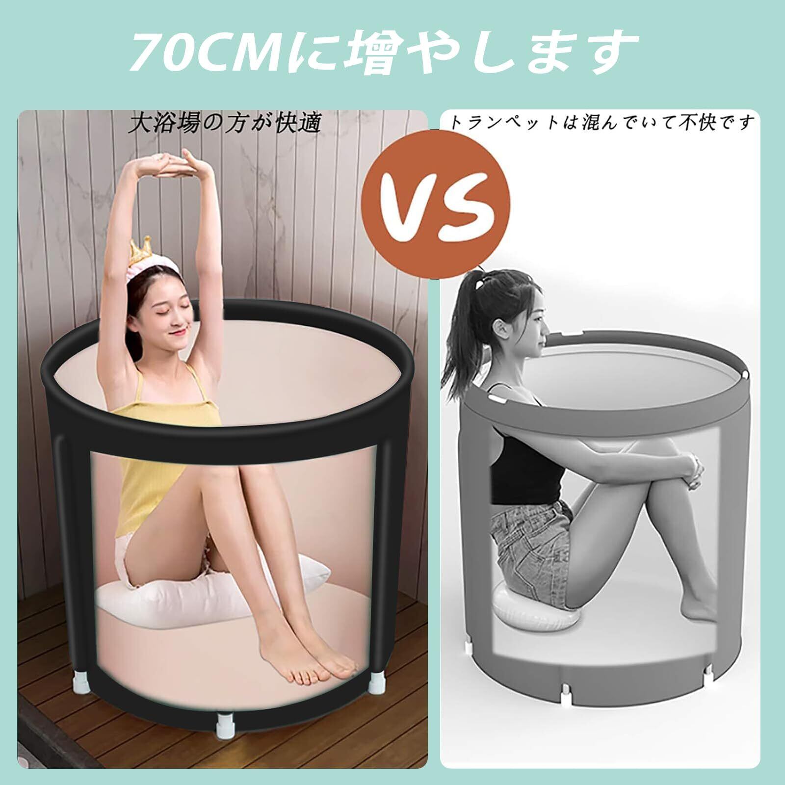 【健康増進】入浴は全体的な健康を改善します。通常のSPAは、肌の質を改善するのに役立ちます。このバスタブは、氷水、バスフォーム、バスオイル、大人用バス、子供用プール、家族、旅行に適しています。使いたい時にもすぐ立ち上げられます。自宅において楽に使用、収納できる最適なバスプールです。SPAと入浴をより楽しくします。