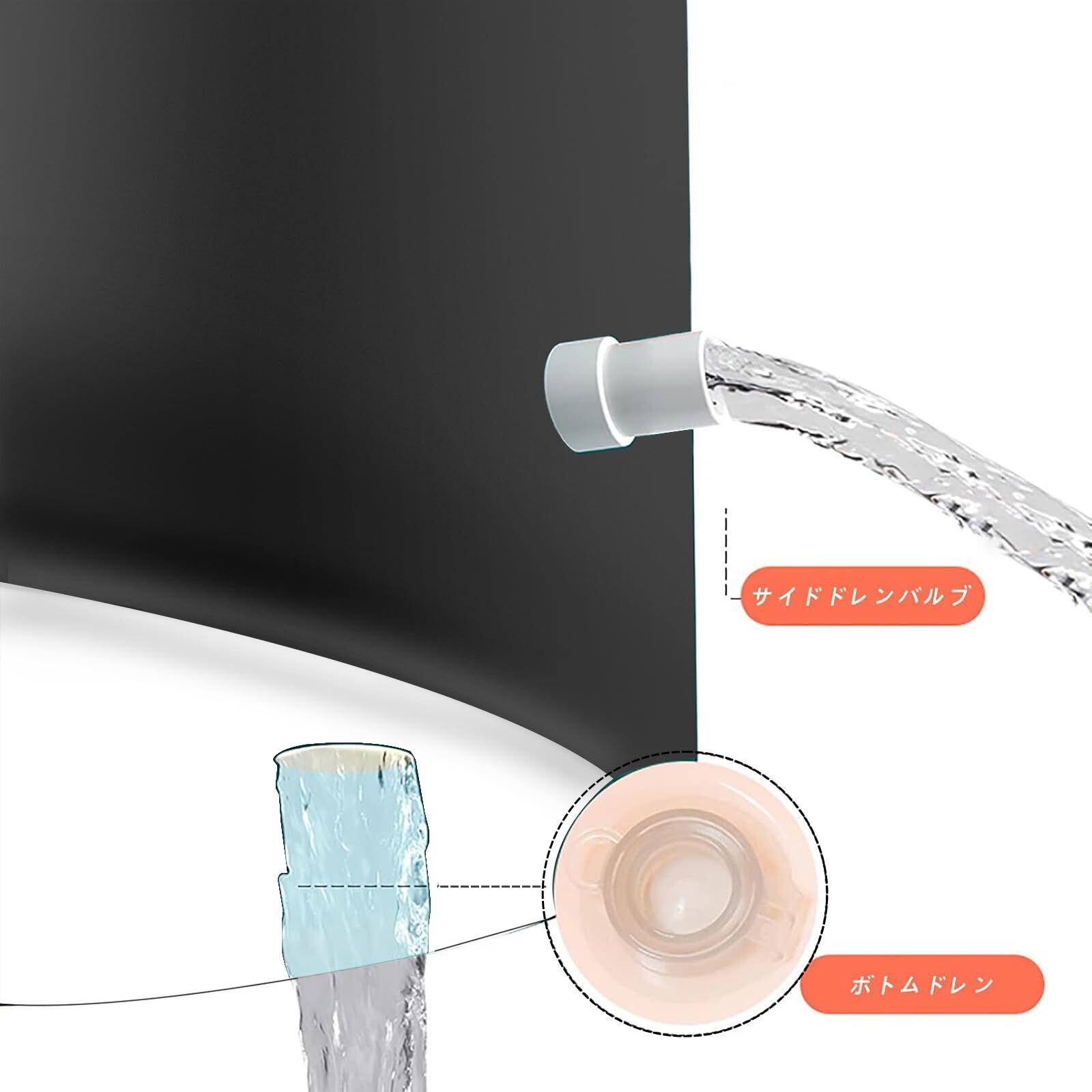 【組み立てが簡単】 いつでもどこでも使えるバスタブ! ブラケットは25 kWの高圧ヒートシールで構成されており、非常に堅牢で設置に3分しかかかりません。側面でも底面でも排水可能です。水を抜けばコンパクトになり、軽量で収納場所にも困らず持ち運びも楽々。持ち運んでアウトドアシーンでも対応可能です。