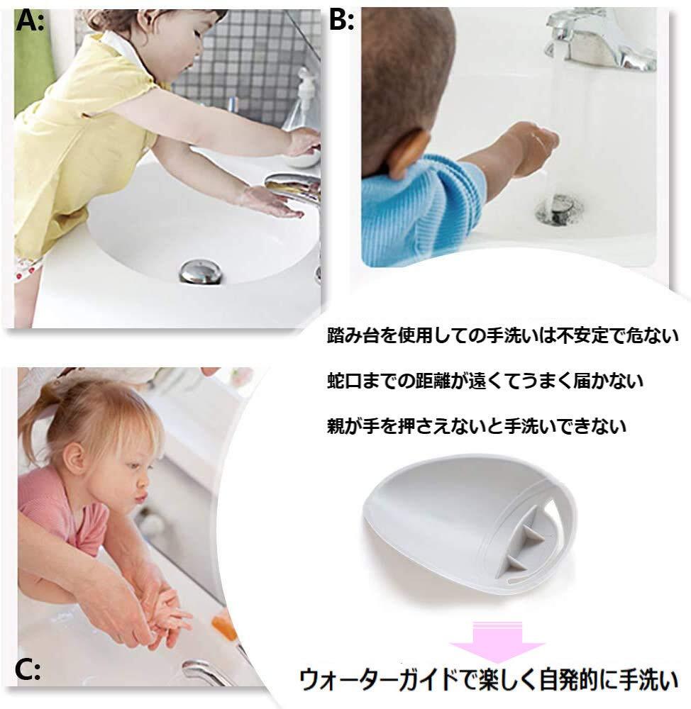 【適用対象】幼児・子供、大人からご高齢の方まで、どなたでも便利にご使用いただけます。 特に小さなお子様の場合ですと手洗いの際、蛇口と手を洗う子供との距離が縮まるので、高さ継ぎ足し用の踏み台・ステップや保護者の助けがなくても楽に手洗いが可能になります。視覚的にも楽しさを取り入れることが出来て、水の流れが緩やになり楽しくなるので、じっくりと手洗いをする、うがい、洗顔、歯磨き等、水回りの衛生習慣が身に付きやすくなります。