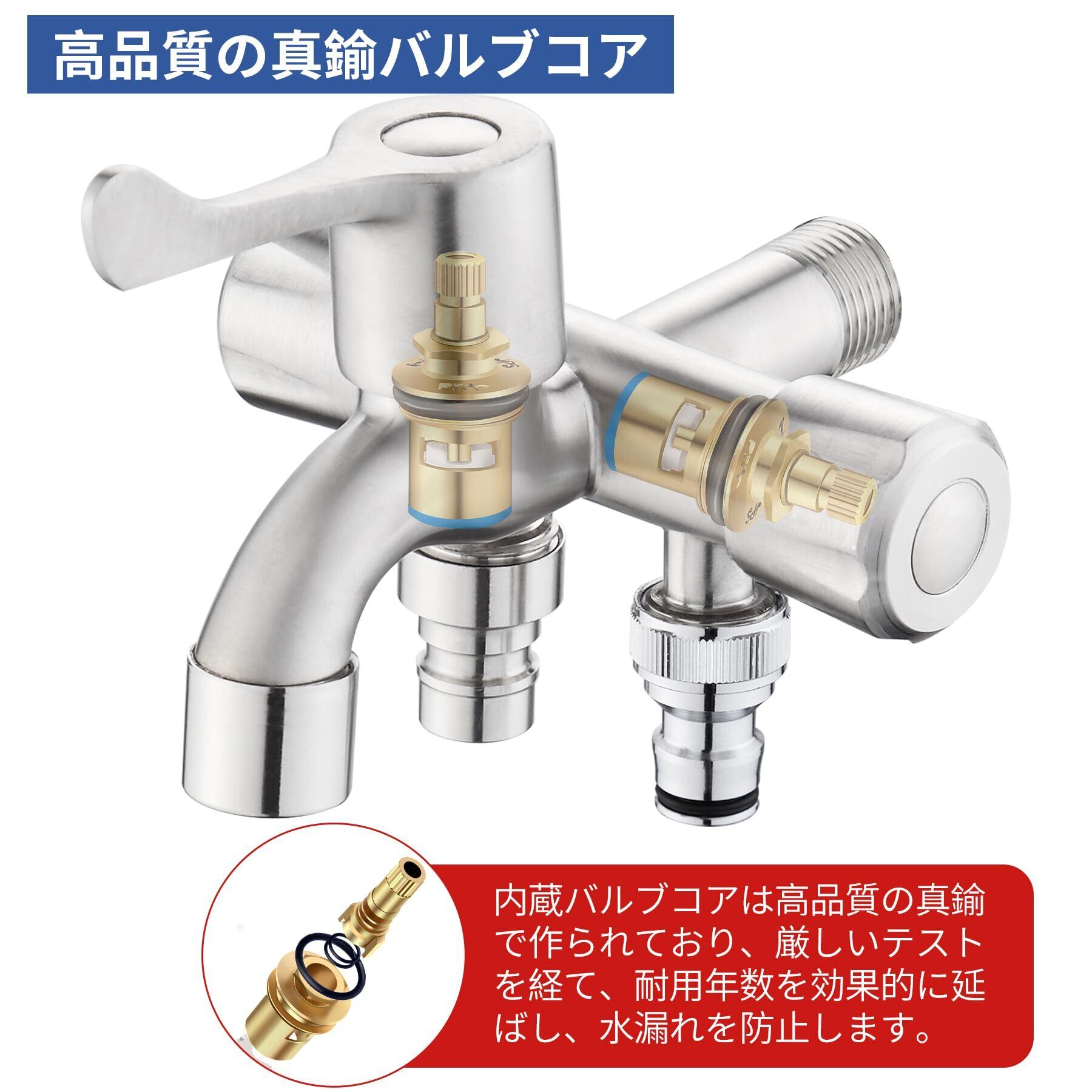 屋外立水栓柱用:この3口蛇口本体は高品質SUS304ステンレス鋼を採用,パイプ壁は肉厚かつ均一に設計され、破損しにくく、合金蛇口やプラスチック蛇口に比べ寿命が格段に長くなっています。ご注意: こちらの 3口蛇口 の本体ボディは、ステンレスパイプのセクション溶接プロセスを採用し、完全手作業で製造されています。その結果、吐水パイプ の位置に 1~3mmの誤差 が生じます。蛇口ごとに わずかに異なります ので、あらかじめご了承ください。ベーシックモデルの 二股蛇口 は、一体鋳造 されたボディを使用しており、蛇口ごとに ほぼ同一の形状 です。