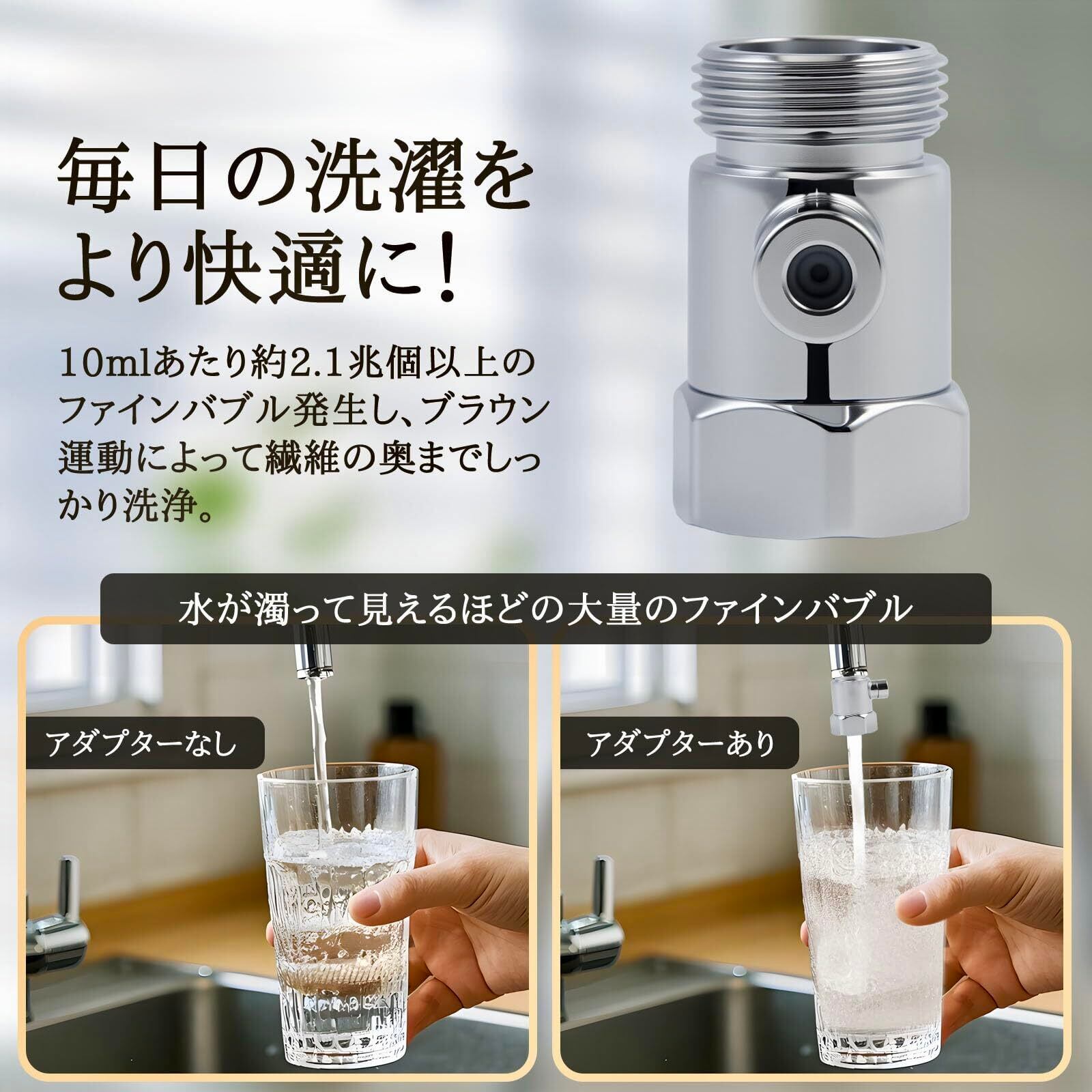TANIFUCOO ファインバブル ナノバブル発生器 洗濯機アダプター タテ型/ドラム式洗濯機対応 工具不要 節水 汚れ・ニオイ除去 洗濯槽洗浄 シルバー