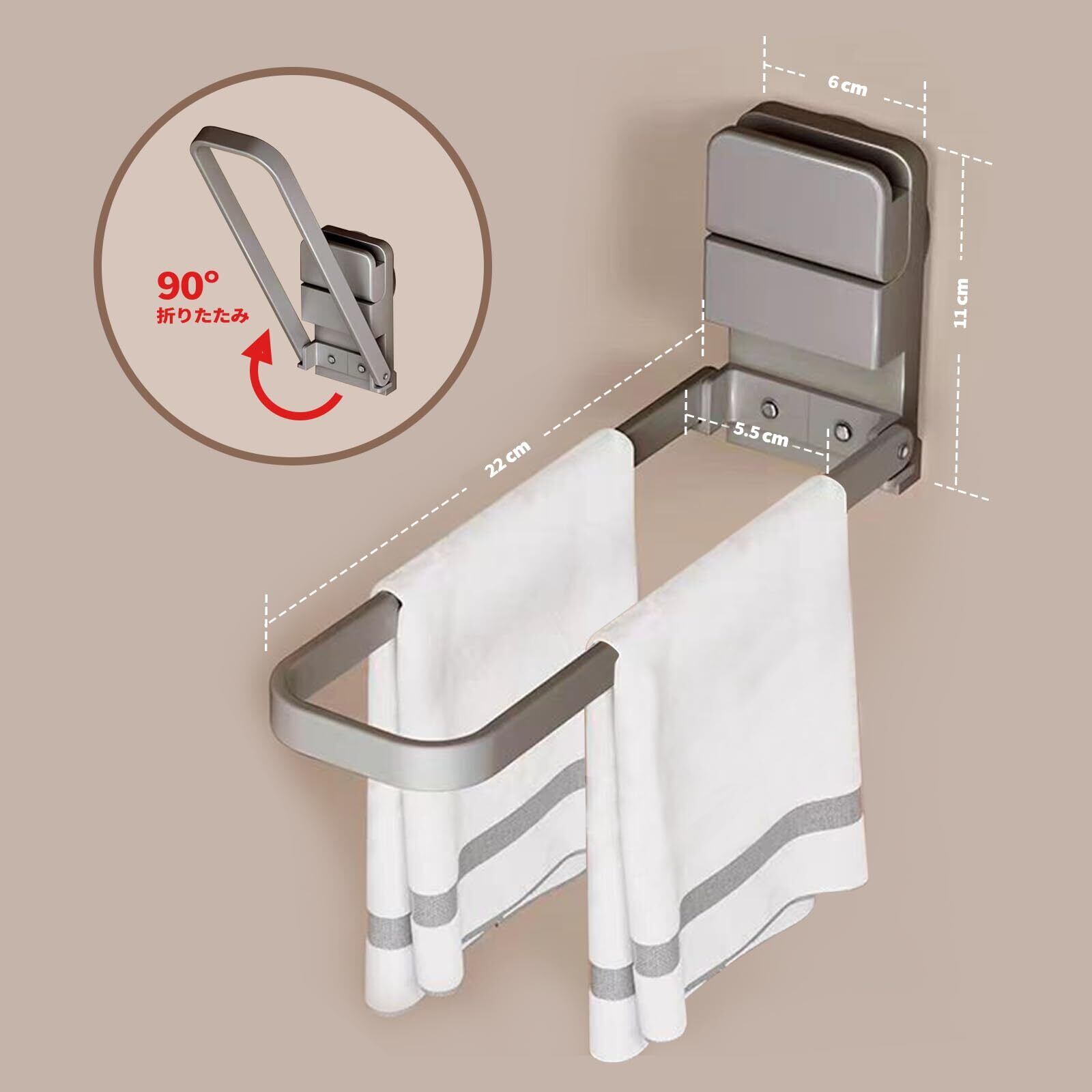 【スマート収納】タオル掛けを使用する必要がない場合は、折りたたみ収納を行うことができ、スペースをより効率的に利用することができます。