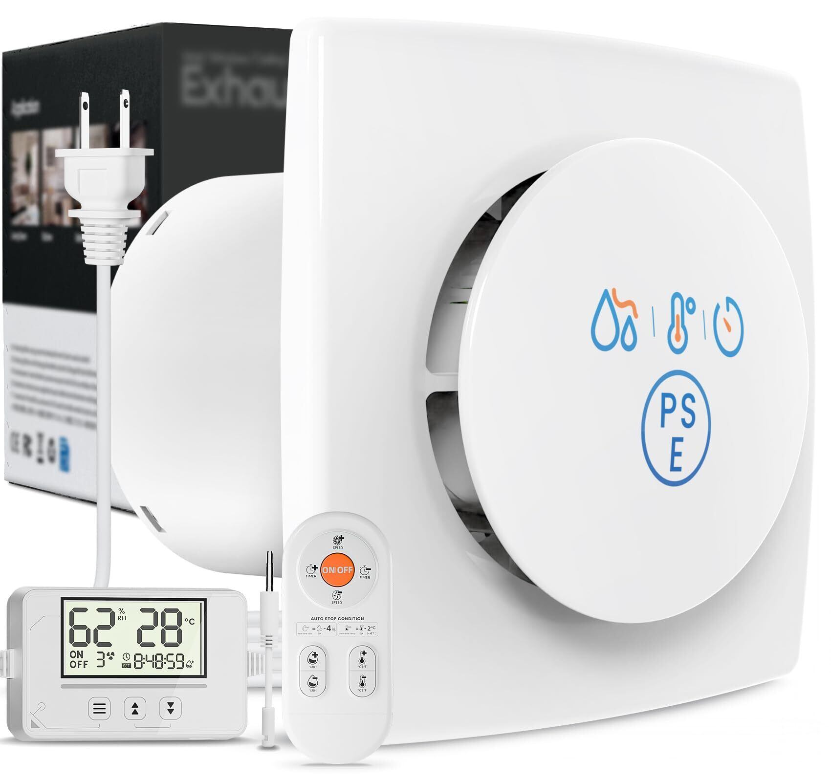 【2022最新】スマート換気扇 自動運転 センサータイプ・リモコン付き・タイマー・3段階風量静音 トイレ 換気扇 温湿度センサー付き 強力常時換気付 長寿命過熱保護 純銅モータ デュアルボールベアリング 温度上昇60K PC+ABS素材 高靭性 高強度 軽量 IPX4防水 排気ファン 居室・トイレ・洗面所用 グローバル展開中