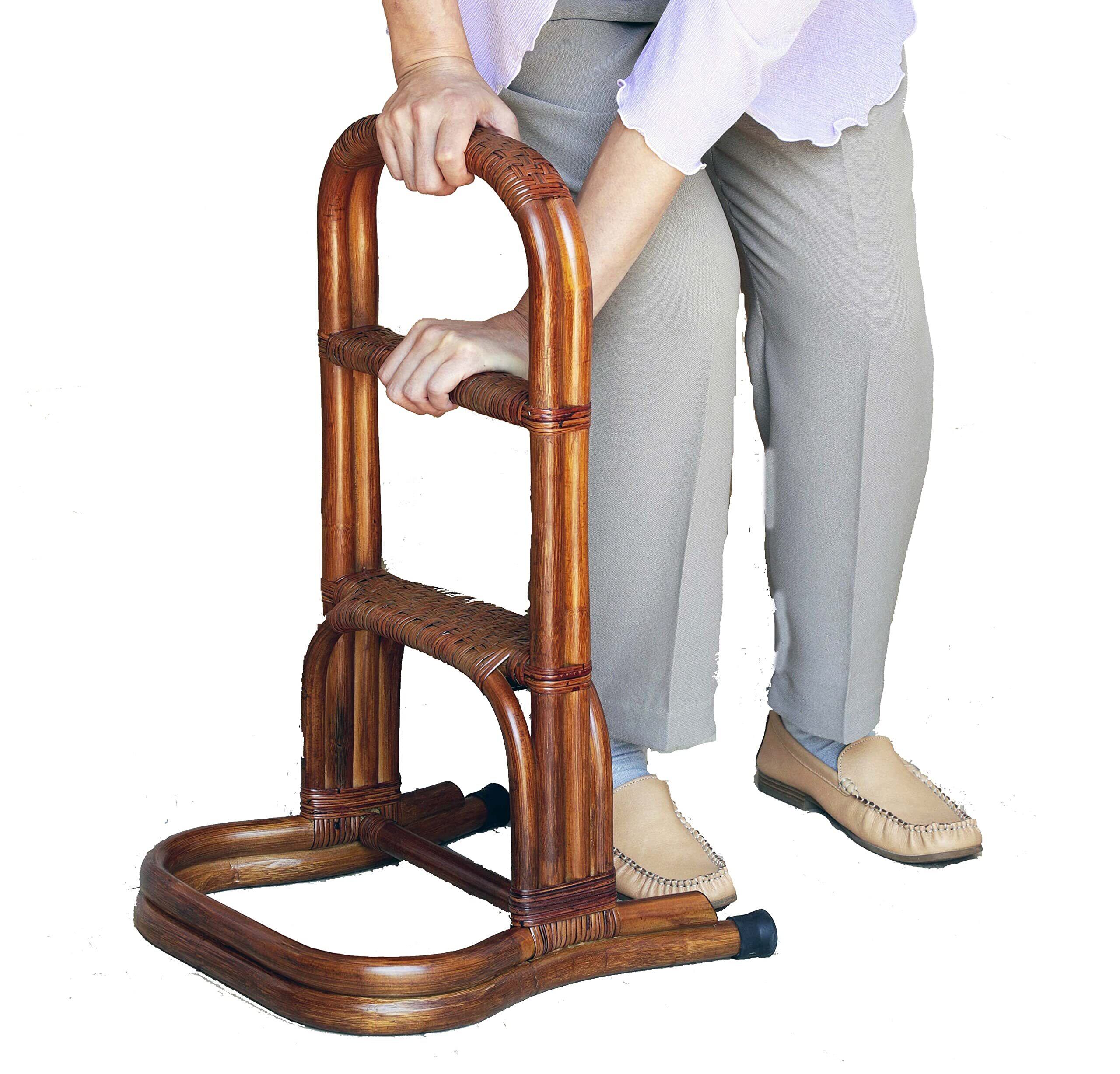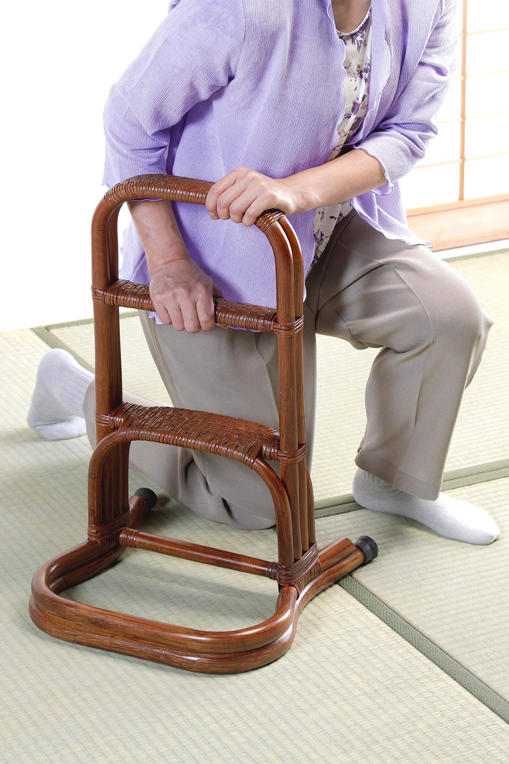 【負担を軽減】椅子からでも床座からでも、立ち上がり時の腰や膝への負担を軽くする設計です。軽量で丈夫なラタン素材は、移動も簡単で、日々の生活を快適にサポート。