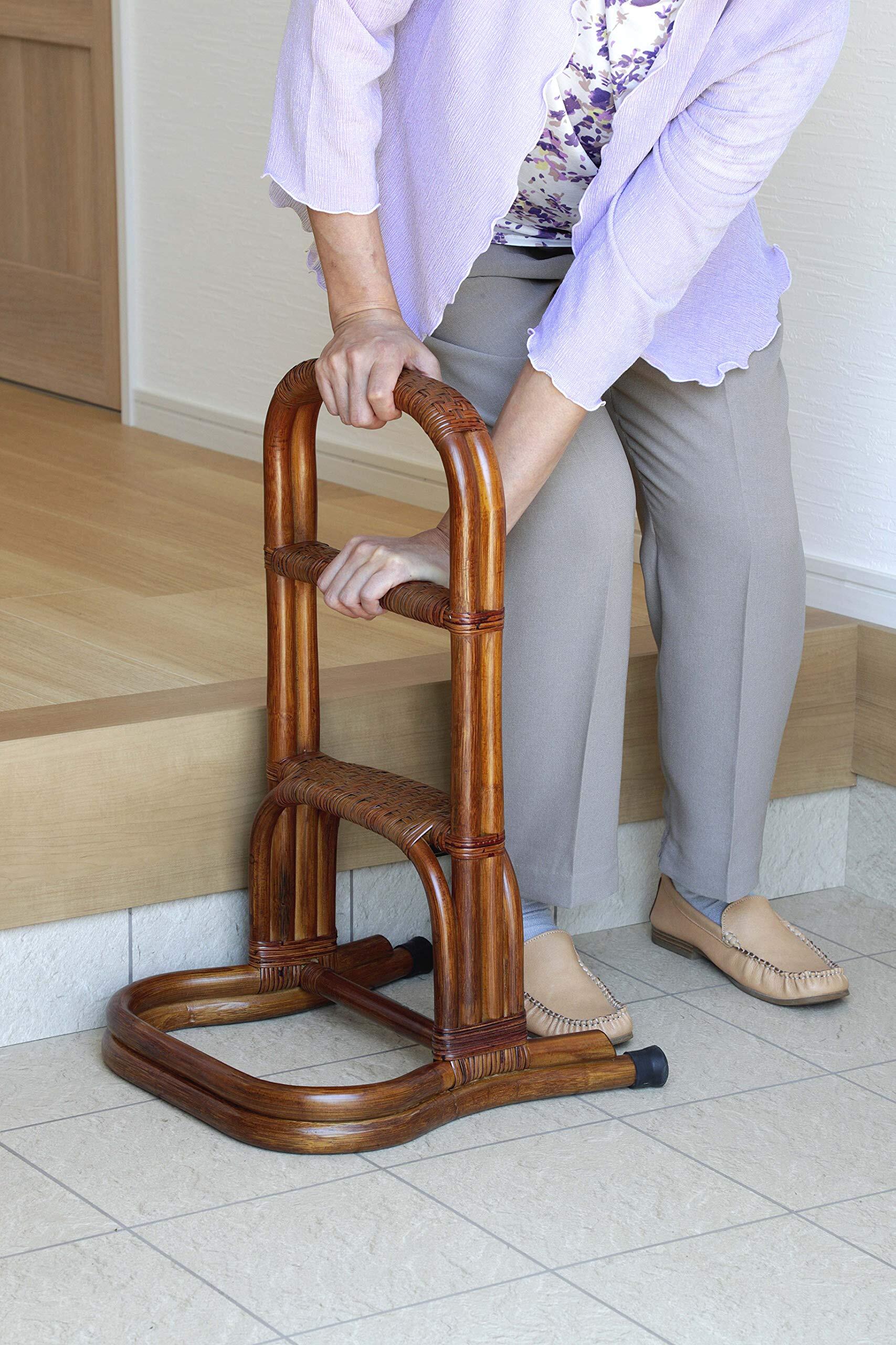 大竹産業 立ち上がり補助器具 玄関台 ブラウン 36x38x60cm 転倒防止 介護手摺 置き型 3段 籐 ラタン OT-204-1