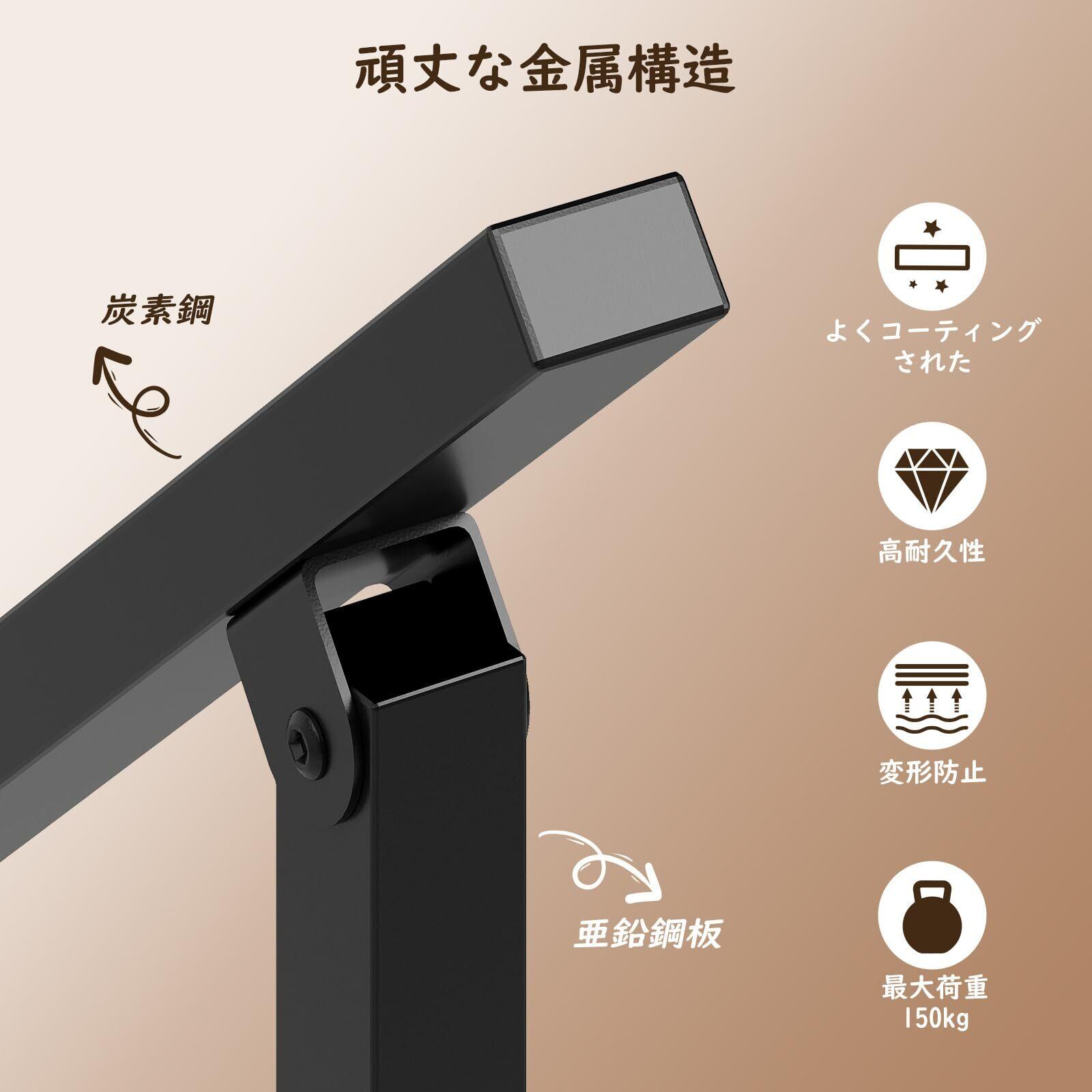 高炭素鋼を使用したこの手すりは、防錆性にも優れており、長期間の使用が可能です。150kgの耐荷重設計により、安心してご使用いただけます。