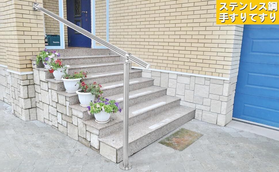 この手すりは階段だけでなく、バルコニーやテラスの手すり、浴室の安全バーなど、様々なシーンで活躍します。屋内・屋外を問わず、生活空間をより安全にするための必須アイテムです。