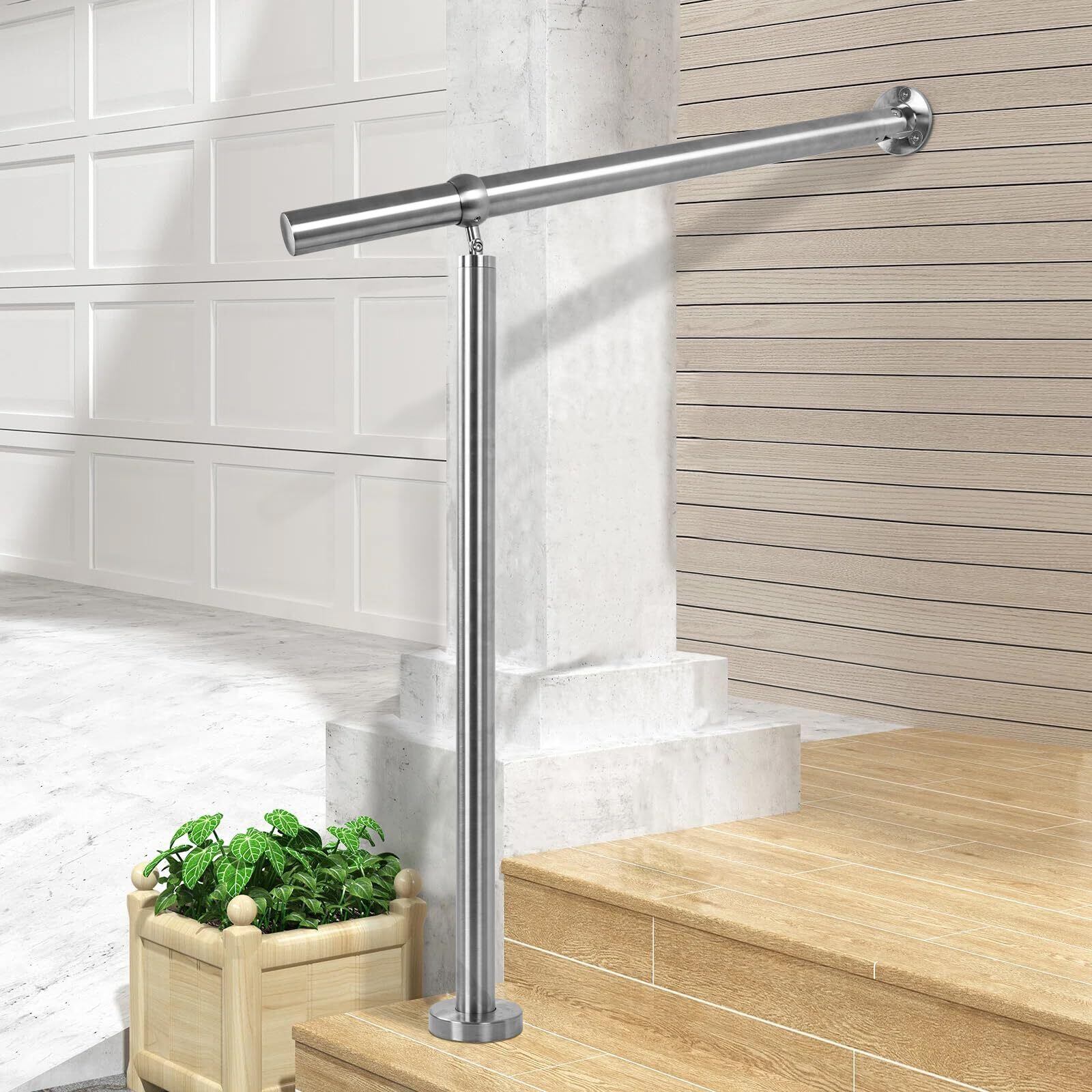 BQKOZFIN 304ステンレス鋼 階段手すり DIY 階段手すり 入口角度調整可能 屋内/屋外使用 取り付け簡単 滑らかなつや消し表面 高さ90cm 直径42mm 厚さ1.2mm 長さ100cm シルバー