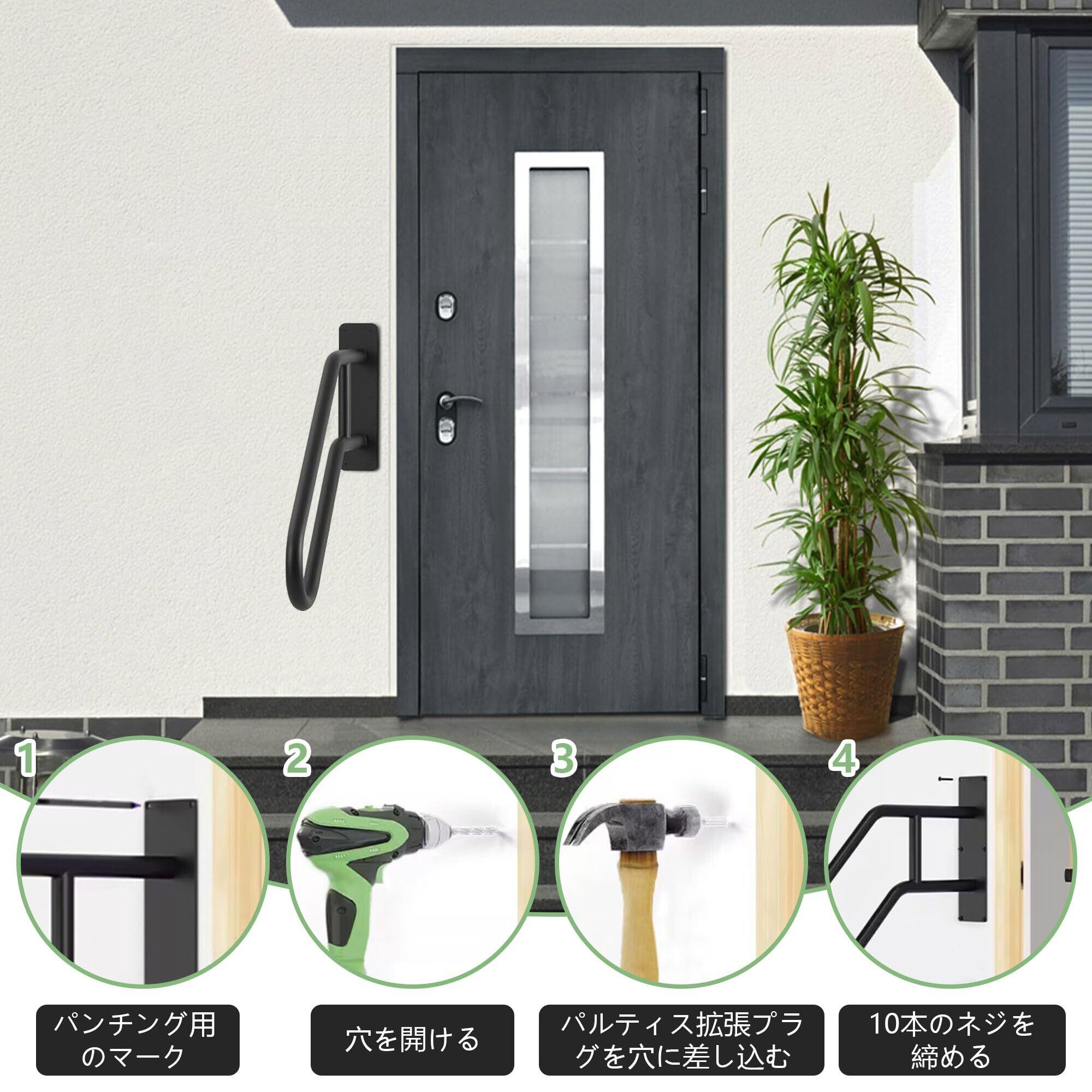 この手すりは、玄関やガレージ、裏廊下はもちろん、庭やポーチなど、さまざまな場所で活躍します。多用途のデザインにより、家庭内のあらゆる場面で便利さを体感できます。
