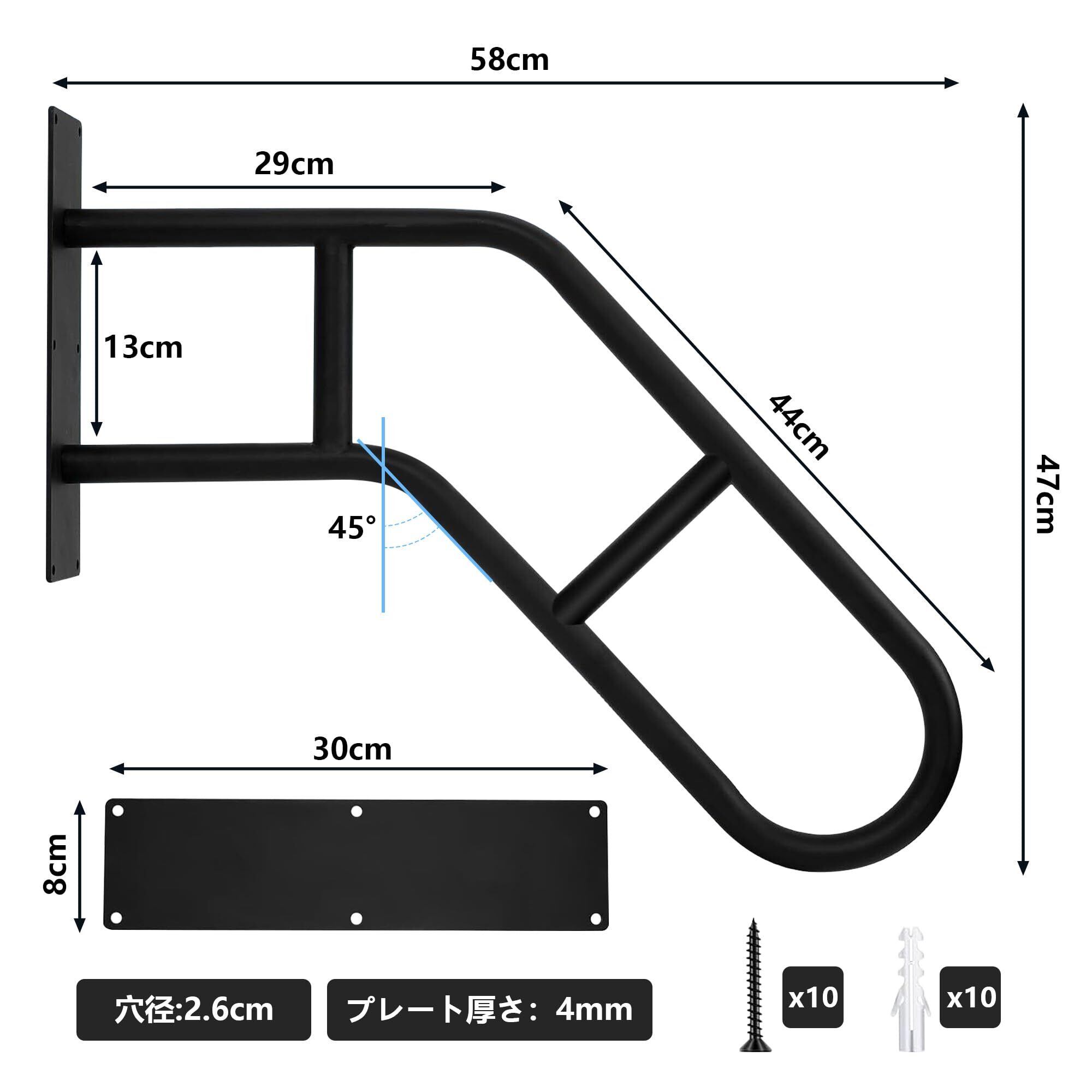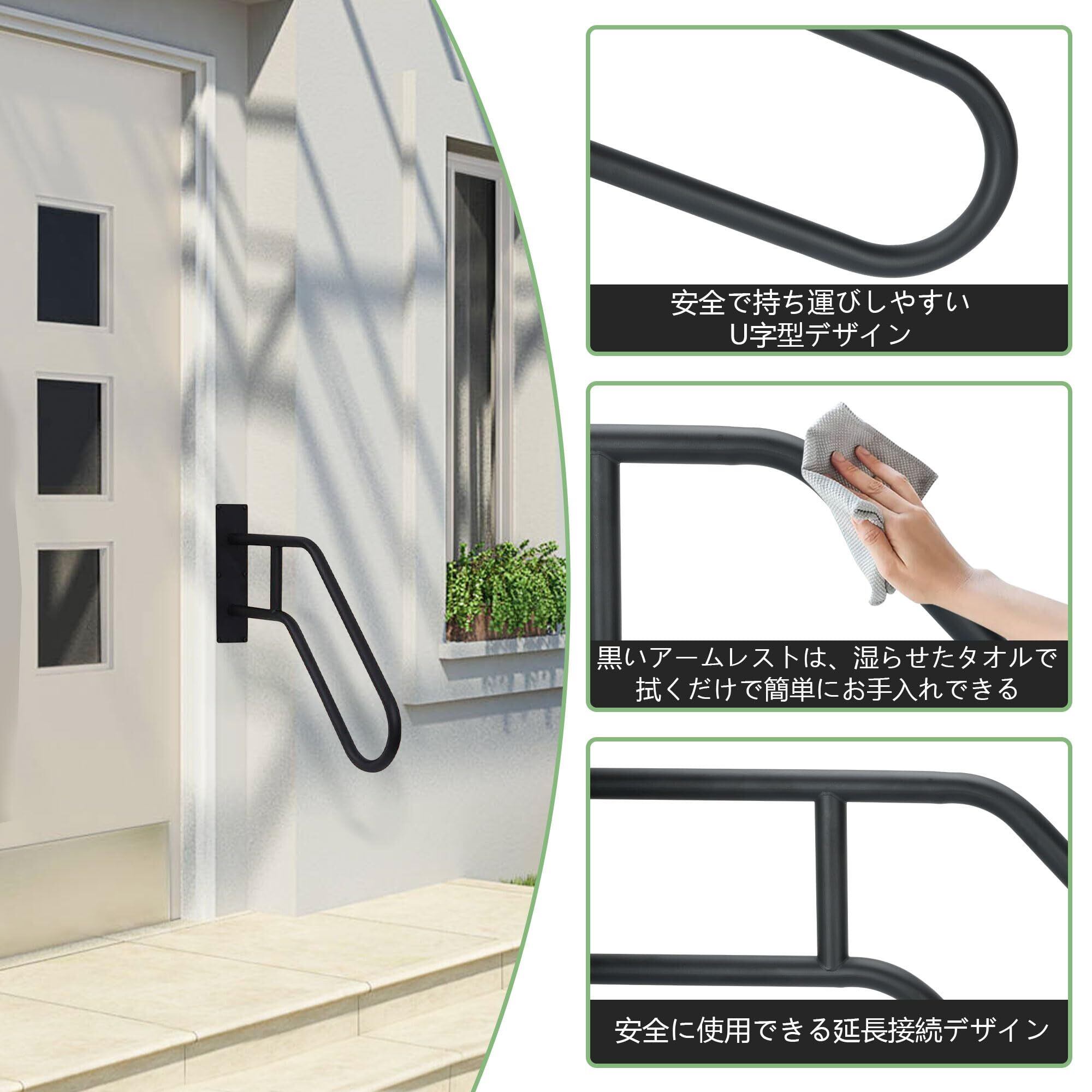 手すり屋外 壁取り付け用手すり 1-3ステップ 58cm 炭素鋼材 U字型階段 玄関 簡単設置 ノンスリップ 使いやすい45度の傾斜角度 高齢者用サポート 屋内 屋外 屋根 裏廊下 庭 ヴィラロフト ガレージ ポーチ用(ブラック)