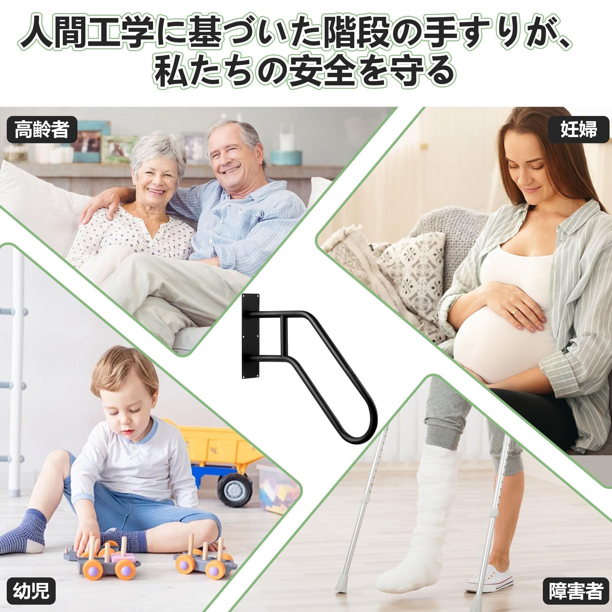 【数量限定】手すり屋外 壁取り付け用手すり 1-3ステップ 58cm 炭素鋼材 U字型階段 玄関 簡単設置 ノンスリップ 使いやすい45度の傾斜角度 高齢者用サポート 屋内 屋外 屋根 裏廊下 庭 ヴィラロフト ガレージ ポーチ用(ブラック)