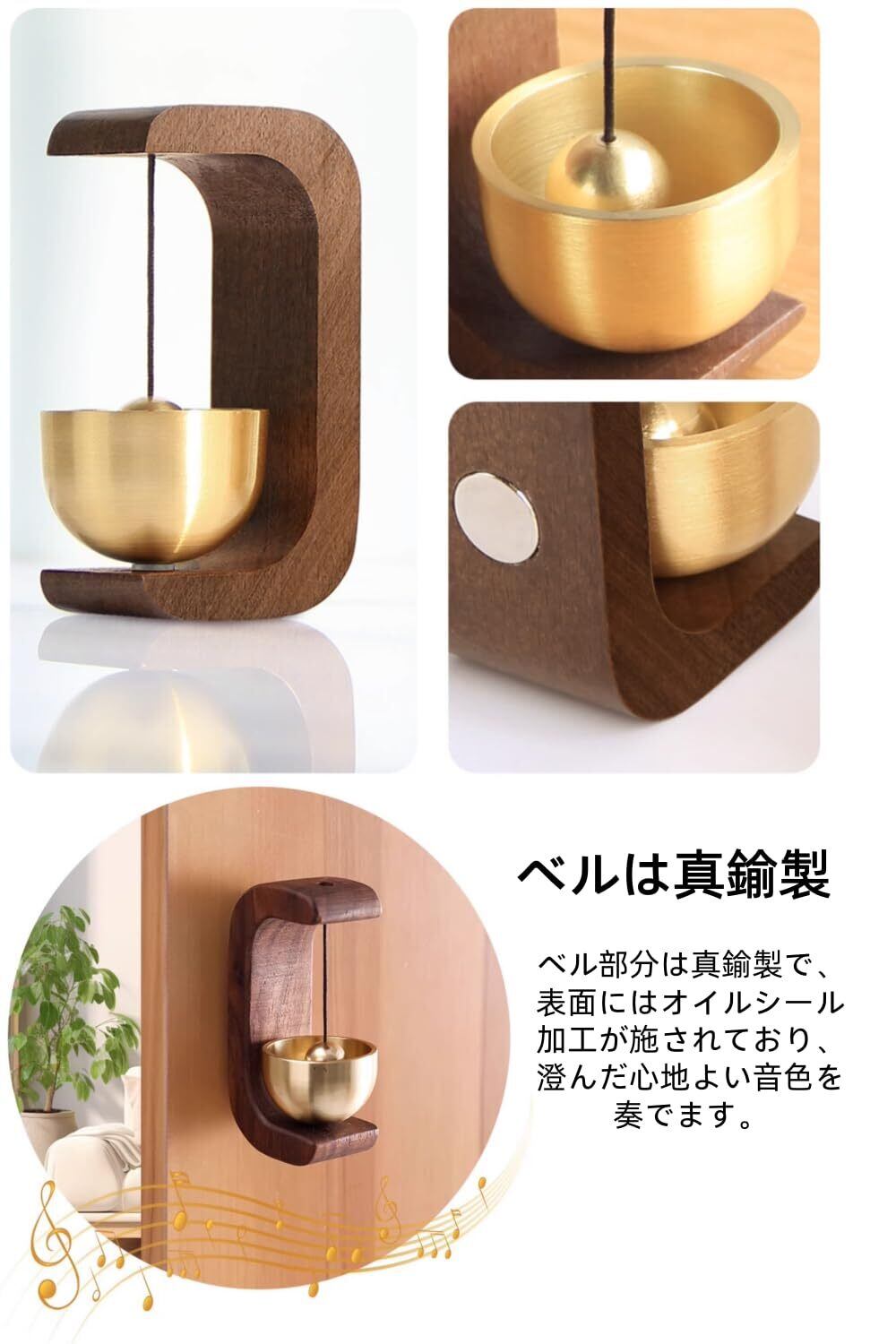 【高品質素材】 本体は天然無垢木材で、厚みがあり割れや変形に強く、耐久性抜群。ベル部分は真鍮製で、表面にオイル仕上げを施し、澄んだ心地よい音色を響かせます。