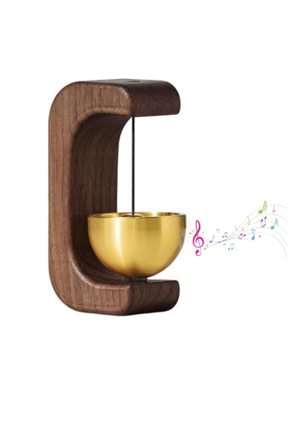 YFFSFDC ドアベル 玄関チャイム 木製 真鍮 ドア鈴 玄関ベル 入り口 鈴 壁掛け 両面テープ付き 取付簡単 ドアチャイム 冷蔵庫ドア 引き戸 装飾 ホーム用 店舗用 プレゼント用 (ウォールナット)