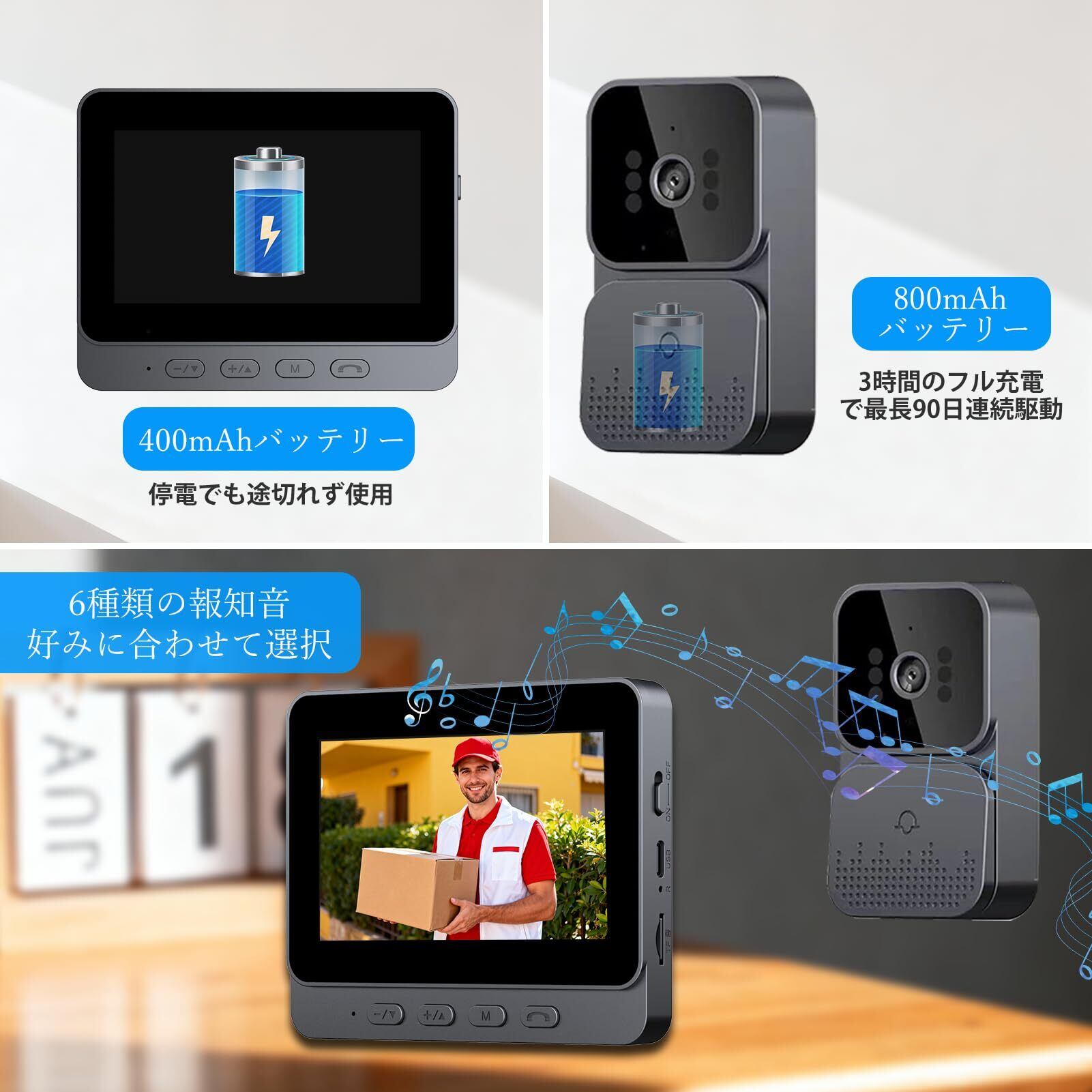 【在庫処分】ZAIDER テレビドアホン インターホン カメラ付き ドアホン ワイヤレス 工事不要 【双方向通話/自動録画】 赤外線LED 暗視撮影 2.4Ghz無線 WI-FI不要 玄関チャイム USB充電 超広角 防犯カメラ 日本語説明書 | allstore3