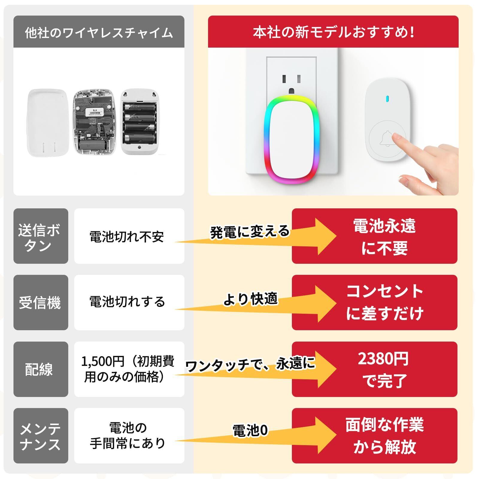 数量限定の「CallToU ワイヤレスチャイム」が新登場!自動発電機能を搭載したこの製品は、電池不要で、安心してお使いいただけます。家庭や店舗での来客通知に最適な一品です。