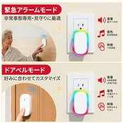 本商品は、緊急警報に加え、ドアベルモードも搭載。来訪者には分かりやすい7色の光でお知らせし、38曲の多彩なメロディから選択可能です。また、4段階の音量調整機能で、お好みに応じた音量設定を実現します。