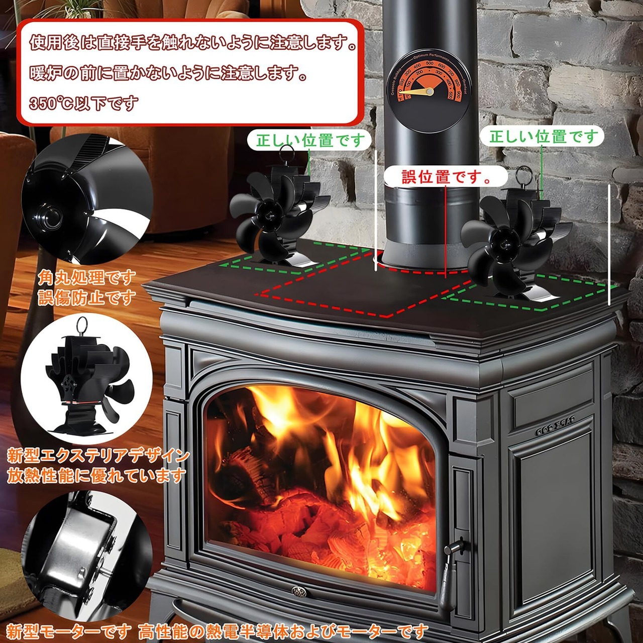 【新着商品】ストーブファン 6つブレード [2025新型強力版] 暖炉用ファン 石油ストーブファン 小型 静音 省エネ 電源不要 薪ストーブ 自動 空気循環 熱供給用品 暖房用 防寒対策 日本語説明書 温度計付き