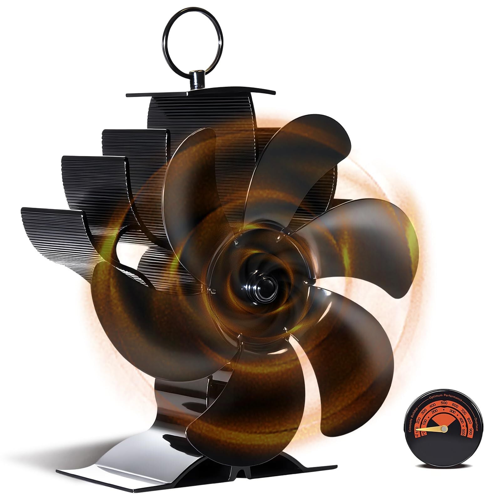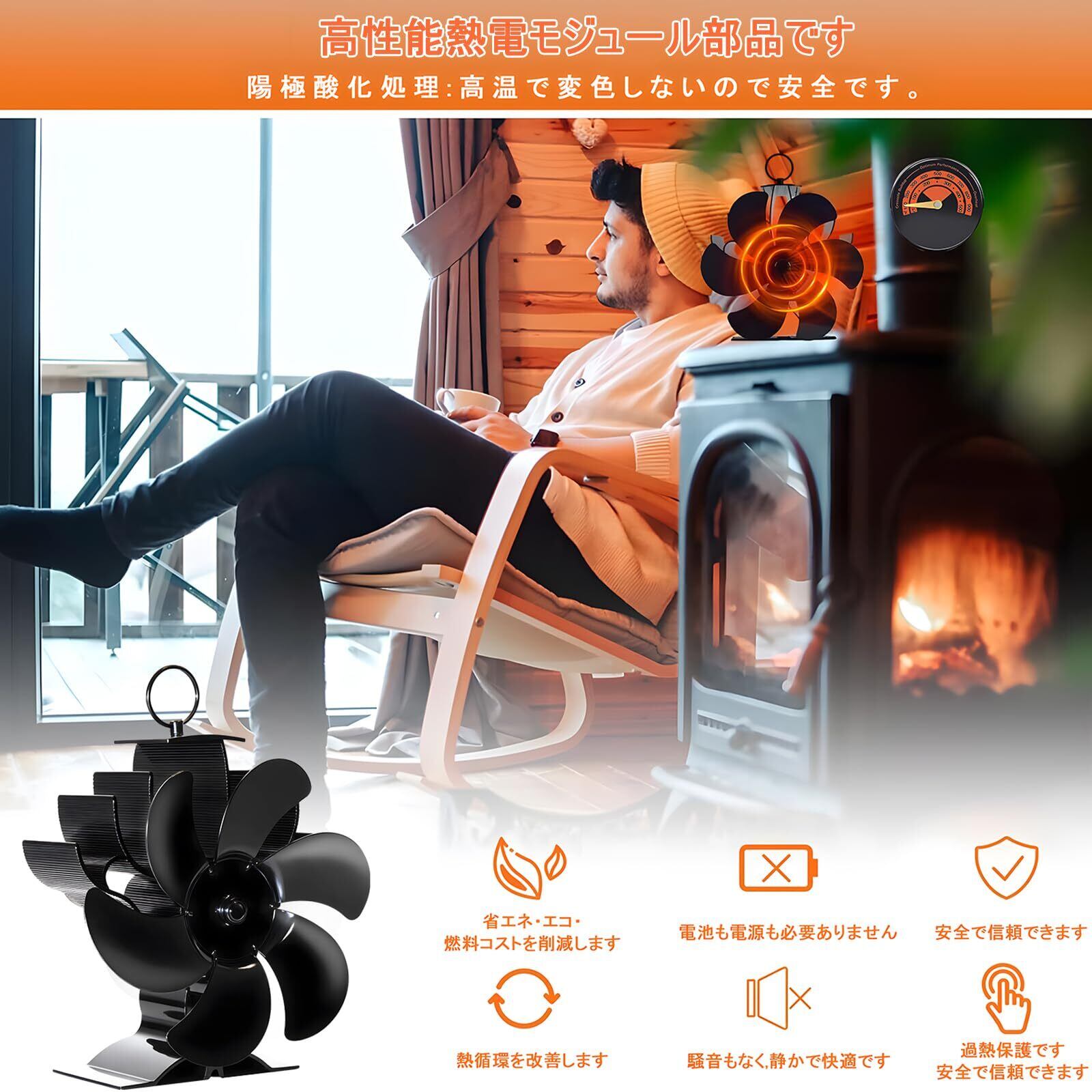 ストーブファン 6つブレード [2025新型強力版] 暖炉用ファン 石油ストーブファン 小型 静音 省エネ 電源不要 薪ストーブ 自動 空気循環 熱供給用品 暖房用 防寒対策 日本語説明書 温度計付き