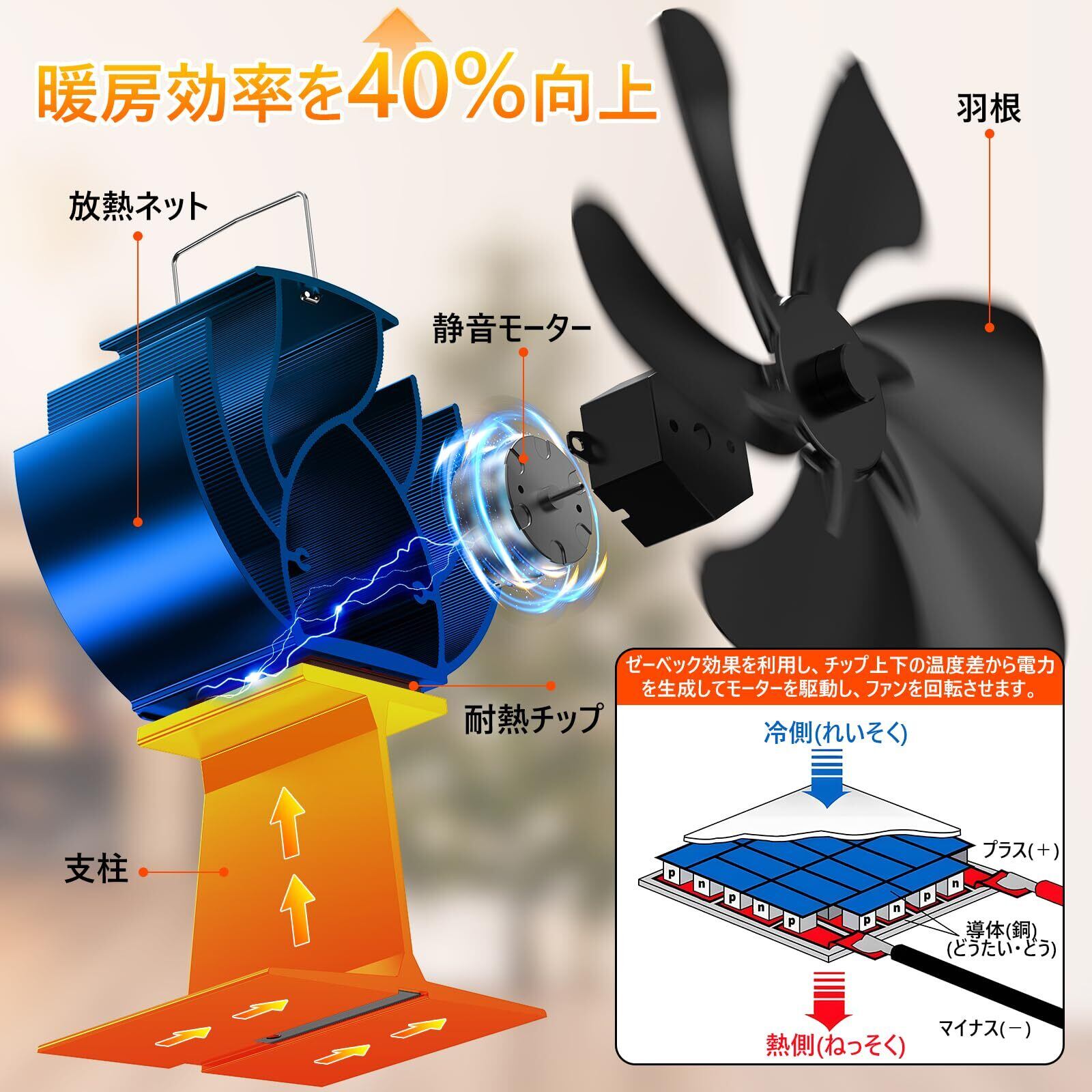 ストーブファン 6枚ブレード 電源不要 静音 省エネ 薪ストーブ 暖炉 石油ストーブ対応 暖房用 室内/キャンプ/アウトドア用 スチール製 空気循環 小型 暖炉用品 日本語説明書付き 2025年新モデル