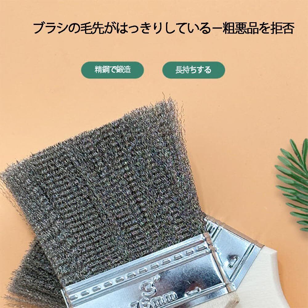2【使い勝手の良いサイズ設計】最適化されたサイズ(ブラシ幅 7.6cm、全長約 23cm)で操作性の柔軟さとカバー範囲を両立しています。旋盤や工作機械の狭い隙間の屑を深く掃除することも、焼き網などの広い範囲を効率的に洗浄することもでき、家庭・アウトドア・産業機械の清掃シーンに適応します。