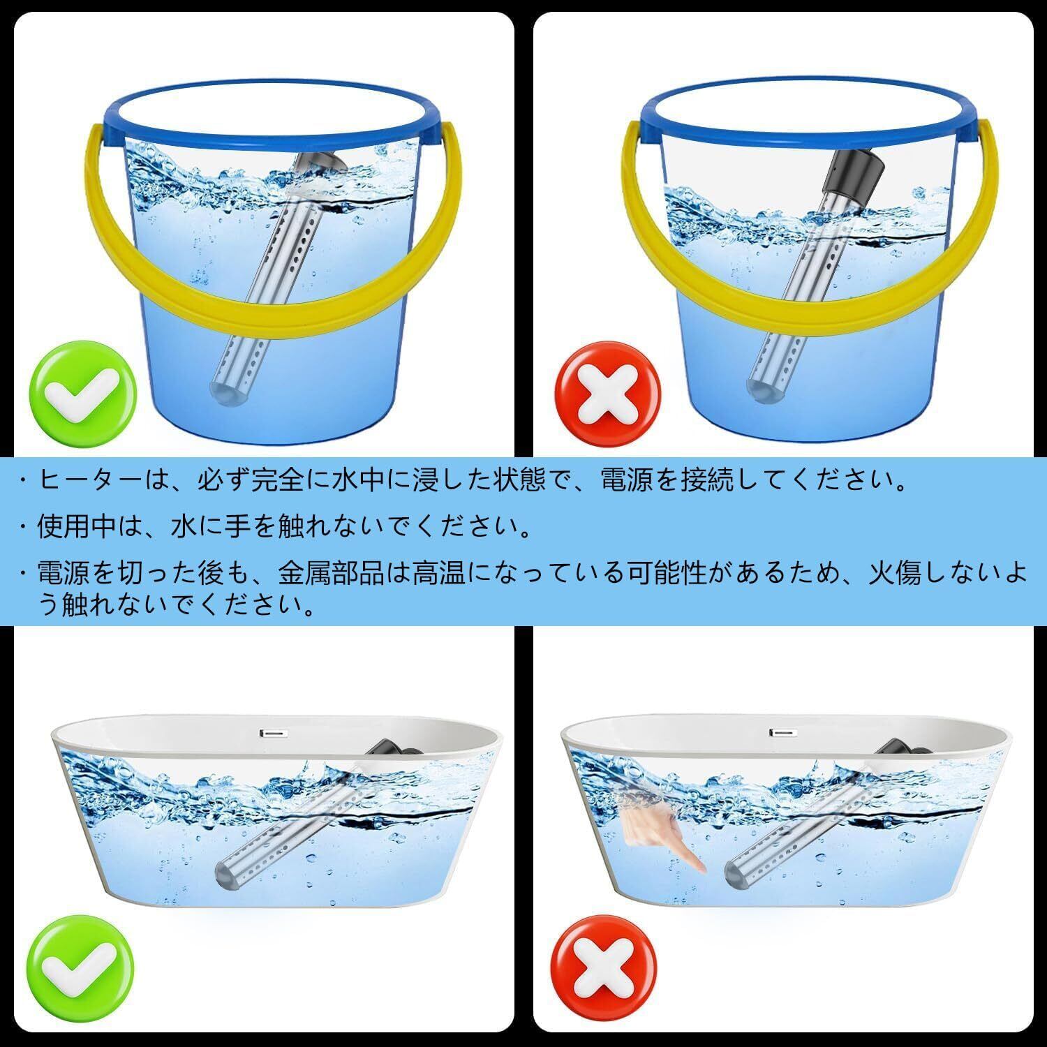 【2022最新】投げ込みヒーター 【2025新型】 スイッチ付き浴槽用給湯器 2000W電気給湯器 温度調整機能付 タイミング機能 自動電源オフ 空焚き防止 ポータブルバケットヒーター 家庭 アウトドア 学校に適しています (ワイヤーたわしと日本語マニュアル付き) (ON/OFFスイッチ付き 70℃定温加熱タイプ) | allstore3