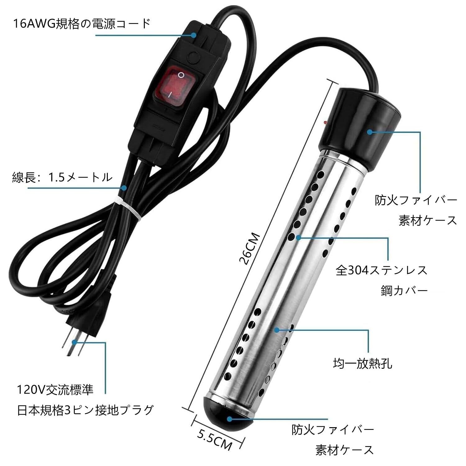 ️【特長】:1. 安全で、やけどや錆びに強い304ステンレス鋼製保護カバー。2. 断熱性と安全性に優れた小型床置き型プールヒーター。3. 3芯15AWG銅線。4. デジタルLCD温度計。5. 電源インジケーターランプ。6. 幅広い用途:ペットの飲用水、建築タイル用水、洗車用温水、RV車のバスタブ、窓拭き用水などを加熱できます(容量約19~38リットル)。