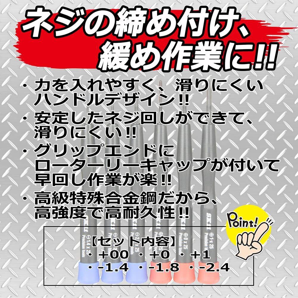 本製品は、+00・+0・+1といったプラスドライバーに加え、-1.4・-1.8・-2.4のマイナスドライバーも含まれた6本組。精密機器の修理やモデル製作、ホビーなど、いろいろなシーンで大活躍します。