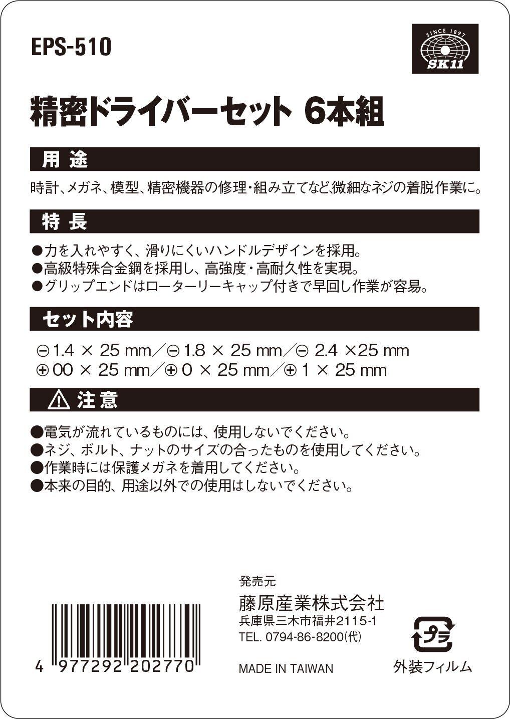 【在庫処分】SK11(エスケー11) 精密ドライバーセット 6本組 +00・+0・+1/-1.4・-1.8・-2.4 EPS-510