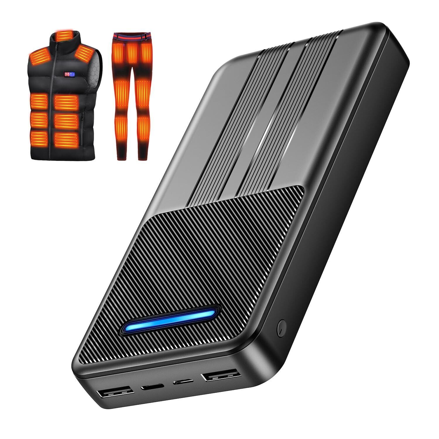【電熱ベスト専用バッテリー&幅広い交換性】このモバイルバッテリーは、加熱ベストのために特別設計されています。出力には二つUSB-A ポートを搭載されています。市販の99.9%以上の電熱ベストと互換性があり、電熱パンツ、電熱毛布、電熱マット、電熱インソールなどの電熱ウェアにも完璧的に適しています。また、モバイルバッテリーとして、iPhone、iPad、Androidなど様々の端末も対応できます。