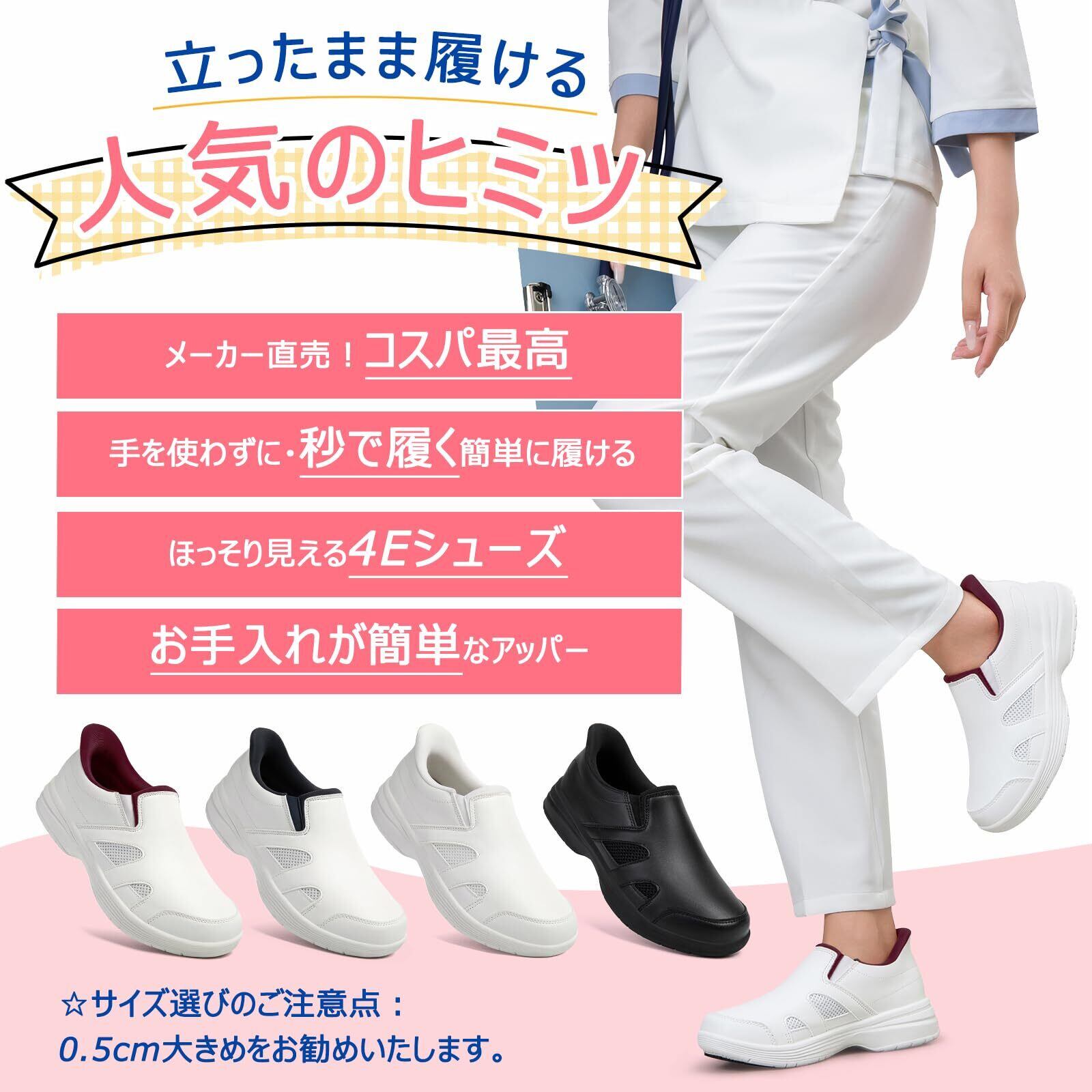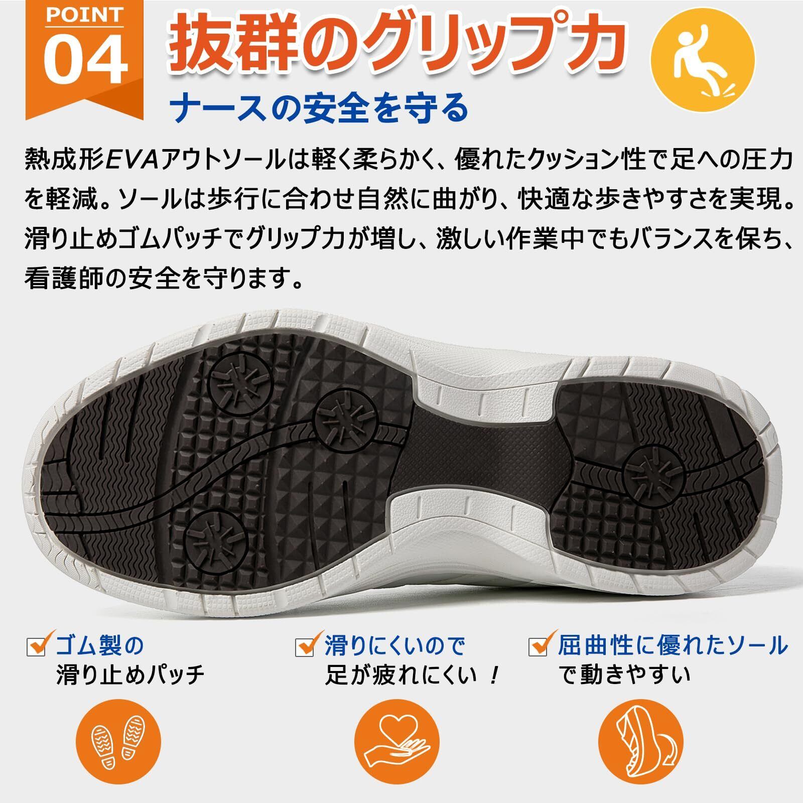 人気の定番2wayデイリーシューズ(立ったまま履ける)をさらに履きやすく改良!快適さとデザインが融合した男女兼用ナースシューズ。MERPHINEのナースシューズは、医療・介護現場で活躍する方々に最適な機能性と快適性を追求したプロ仕様のワークシューズです。全ての医療従事者のために設計された男女兼用ナースシューズは、長時間の使用でも疲れにくい特別な機能を備えています。かかとあり/なしの2WAYデザインで、状況に応じてサボシューズとしても活用可能。片足約150gの超軽量設計と広めの4E幅が甲高や外反母趾の方にもフィットし、足への負担を軽減。三方向メッシュ素材と厚めの高反発インソールで通気性・衛生面を徹底ケア。靴底は軽量EVA素材+滑り止めゴム素材を使用、軽量快適と防滑性を両立。医療現場の衛生基準をクリアした洗える取り外しインソール付きで、清潔さを持続。看護師・介護士が使用するナースシューズとしてはもちろん、ハウスクリーニング・保育所など室内で動き回る方のワークシューズとしも最適です。シンプルでスタイリッシュなデザインは、ユニフォームとも合わせやすく、職場でもプライベートでも活躍すること間違いなしです。