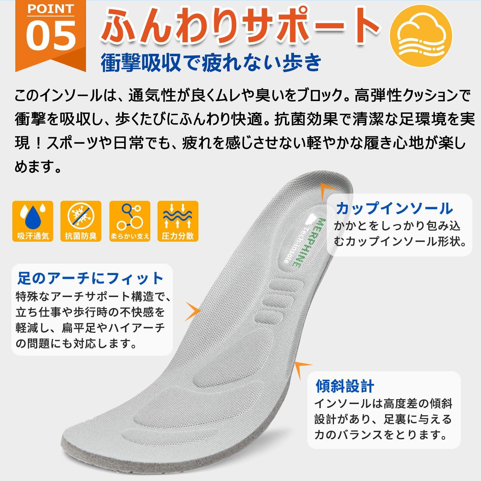【超軽量&広幅4Eで圧迫ゼロ】片足約150gの軽さと4E幅設計が甲高・幅広足を優しく包み込み。履いていることを忘れてしまうほどの軽い履き心地で、軽快なフットワークを実現。つま先の立体縫製で細見えしながらも、足指を自由に動かせる快適空間を提供。
