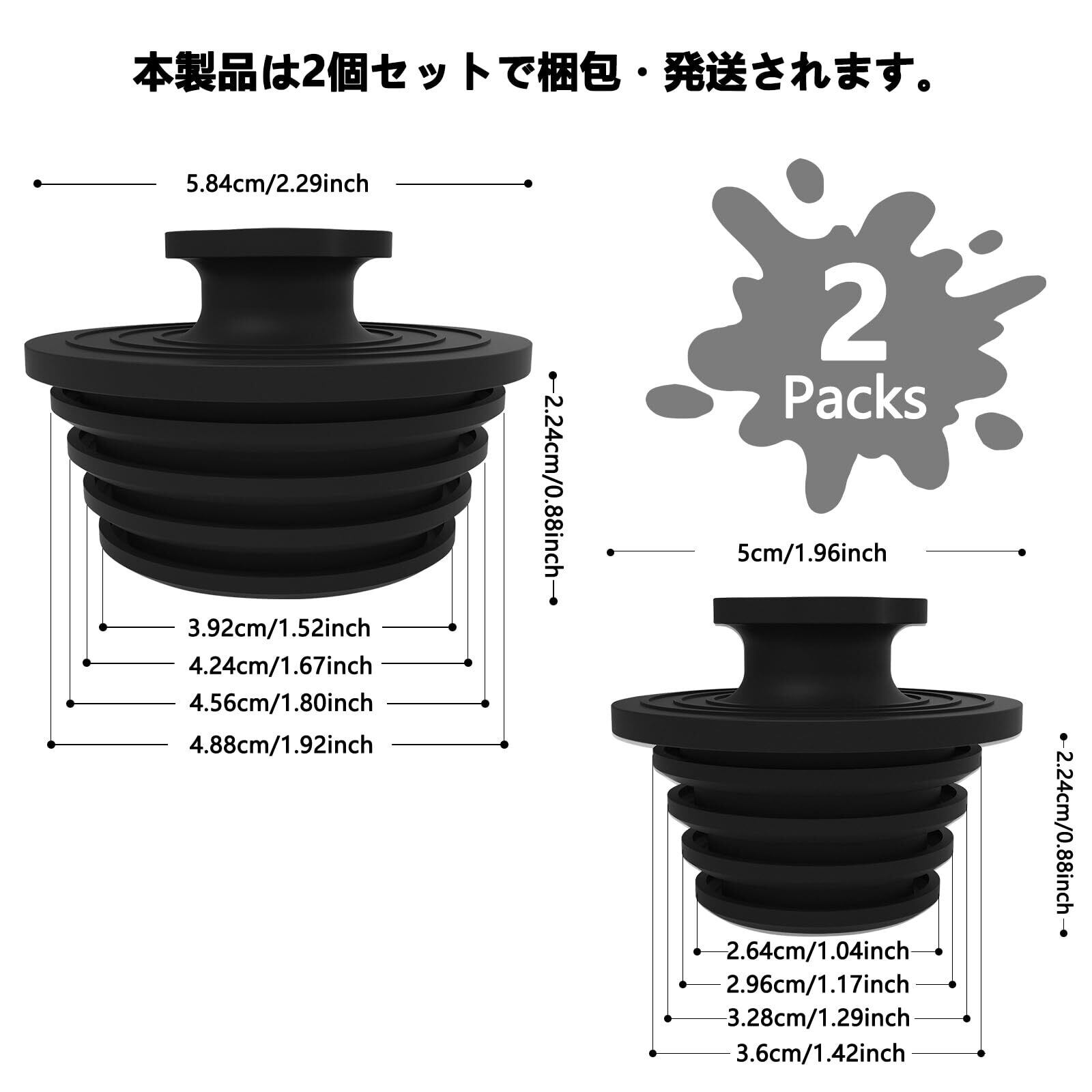 【特価商品】Osznmmg バス用 風呂栓 【2025新開発】2個セット ゴム栓 排水口 止水栓 洗面台 柔軟性 耐用性 お風呂の栓 排水口径25~55mm用 (黑)