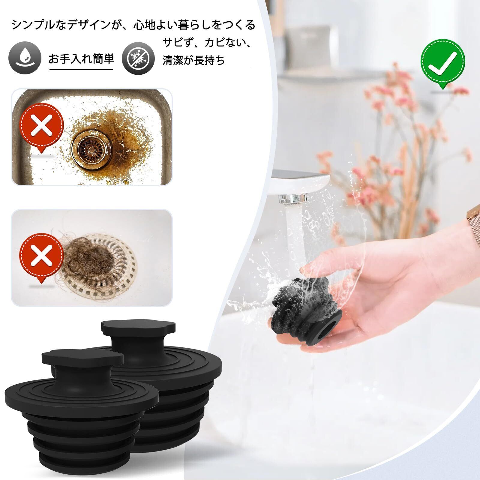 【詰まり・悪臭・害虫を防止】このゴム栓ーは、排水口にたまる有機物の腐敗を防ぎ、嫌な臭いや排水口からの小虫の侵入も防止します。