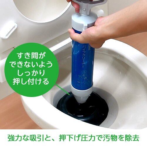 このパイプクリーナーは、高い吸引力を誇り、詰まった水や異物を一気に取り除くことが可能です。特に特殊なゴム付き設計で、しっかりと密着し、強力に吸引します。トイレの詰まりの悩みをスムーズに解消し、清潔なトイレ環境を実現します。