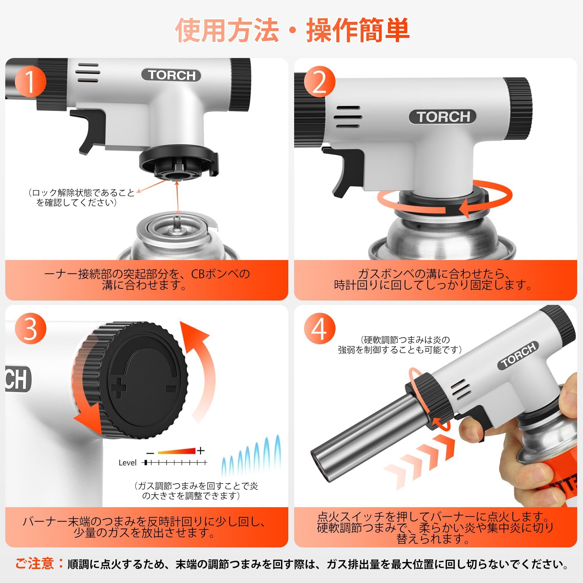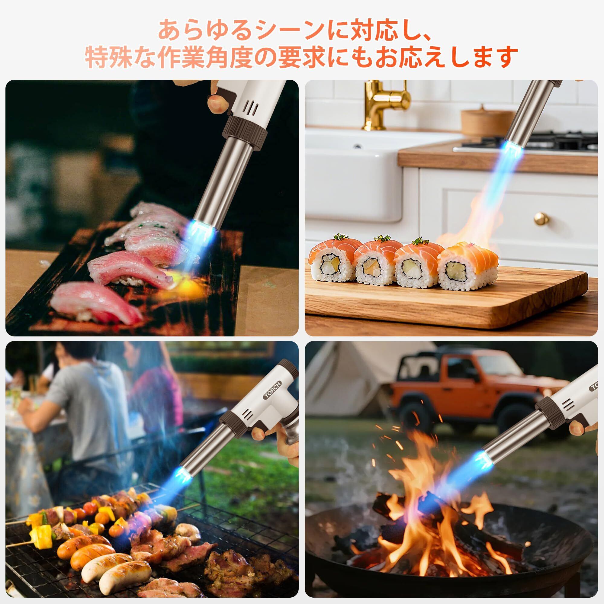 新しい「ガスバーナー」が登場!料理、BBQ、溶接まで幅広く活躍するこのバーナーは、900℃から1300℃までの火力調整が可能で、あなたのニーズに合わせた使い方が実現します。全角度対応で逆さ使用もできるので、どんなシチュエーションでもお使いいただけます。