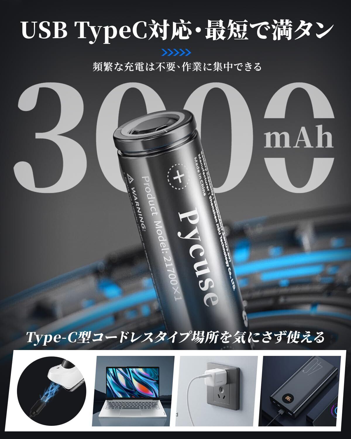 【USB Type-C 充電式・4.5V 3000mAh 大容量バッテリー】このバッテリ駆動の USB 充電式電動ドライバーは、バッテリー交換不要で繰り返し充電可能です。4.5V・3000mAh 超大容量バッテリーを内蔵し、航続時間は約 1 時間以上と長く、作業途中で電源切れを心配する必要がなくなります!