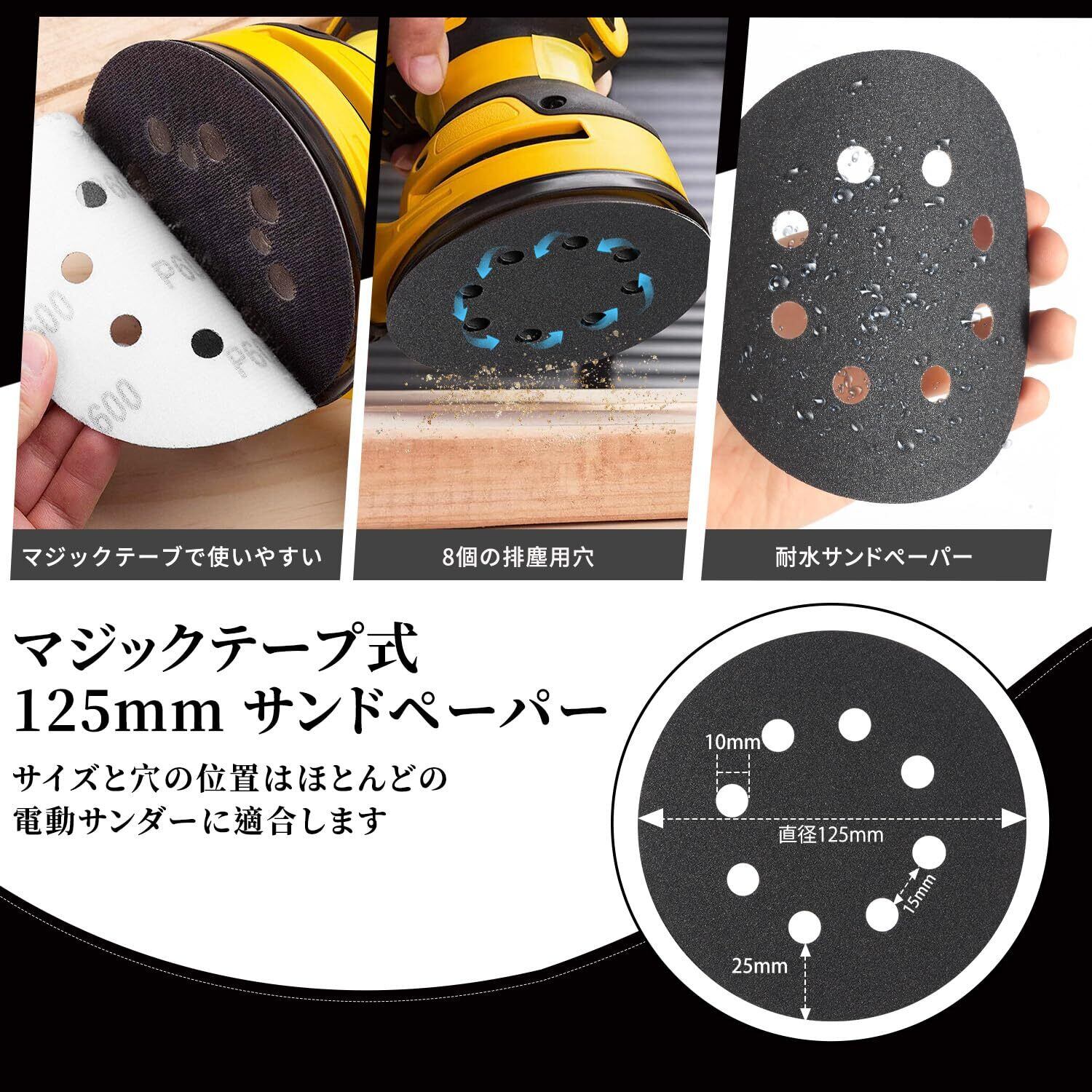 ランダムサンダー ペーパー 125mm 耐水ペーパー 120~3000番 45枚入セット サンダー ペーパー マジック式 8穴 サンディングペーパー 丸型 サンディングディスク 電動サンダー用 サンドペーパー 木工DIY作業に 金属磨き 自動車整備 9種類120 240 400 600 800 1000 1500 2000 3000 各5枚入
