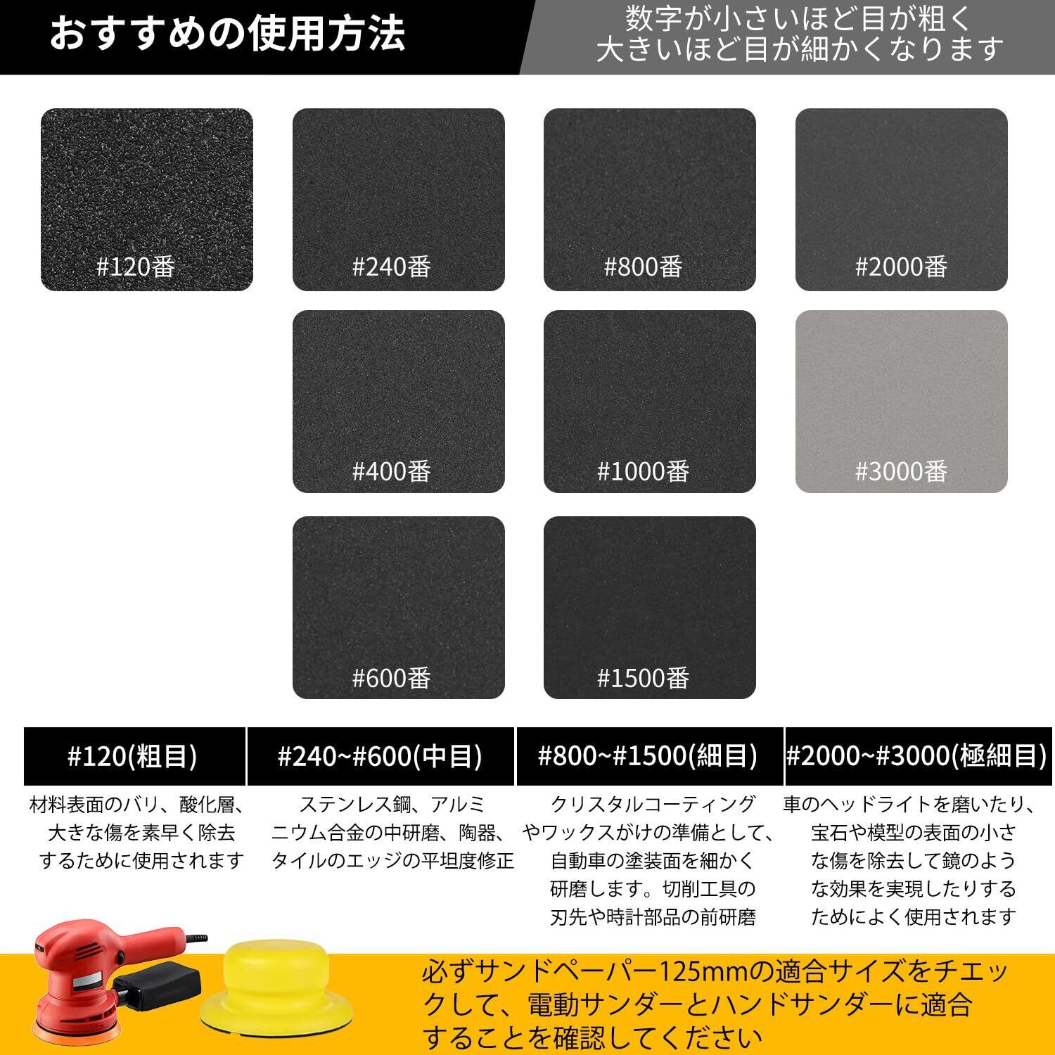 【適用機種】標準直径125mmの電動サンダー用ペーパー、様々な種類のランダムサンダーやポリッシャーに適用可能、DIY作業に最適なセットです
