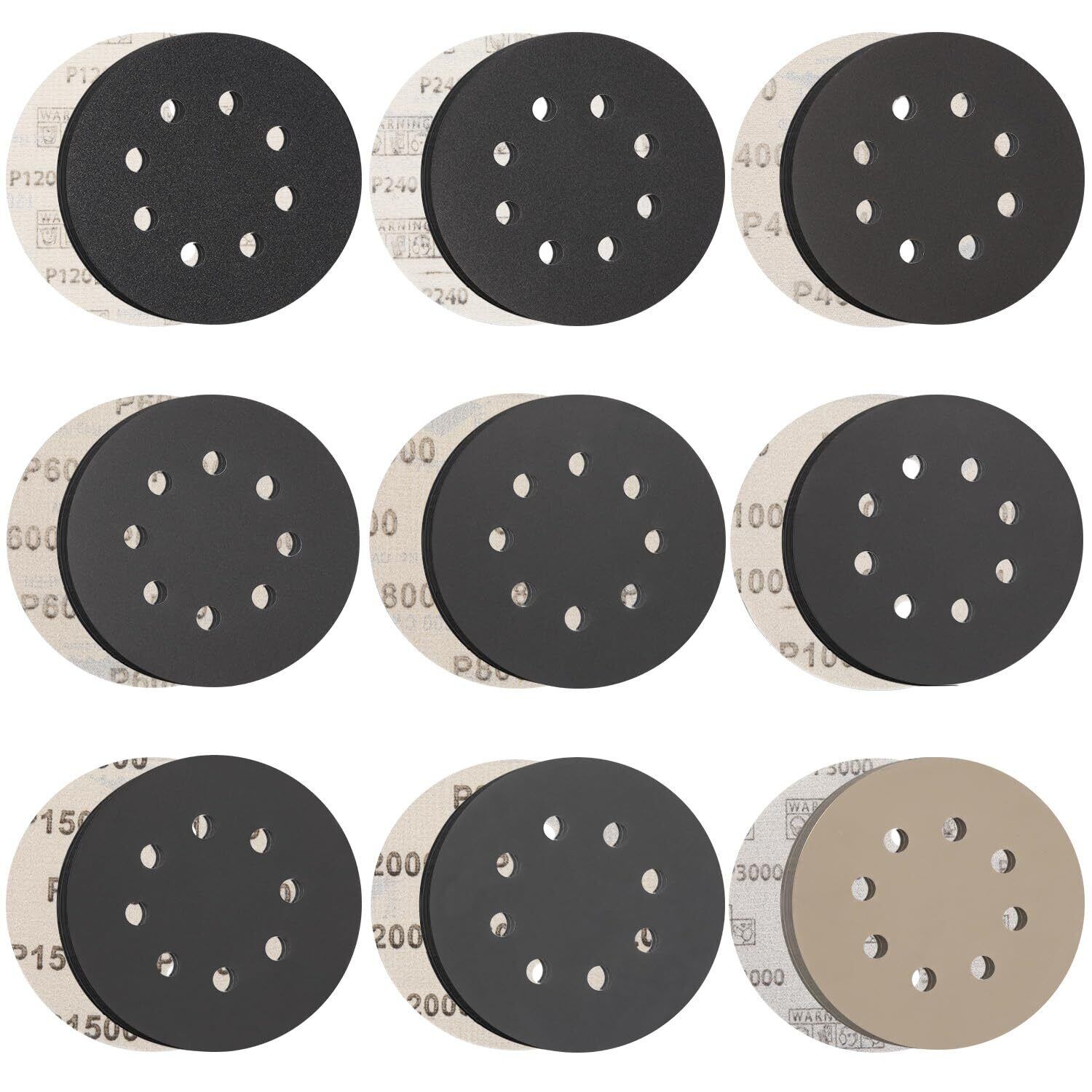 【在庫セール】ランダムサンダー ペーパー 125mm 耐水ペーパー 120~3000番 45枚入セット サンダー ペーパー マジック式 8穴 サンディングペーパー 丸型 サンディングディスク 電動サンダー用 サンドペーパー 木工DIY作業に 金属磨き 自動車整備 9種類120 240 400 600 800 1000 1500 2000 3000 各5枚入 | allstore3