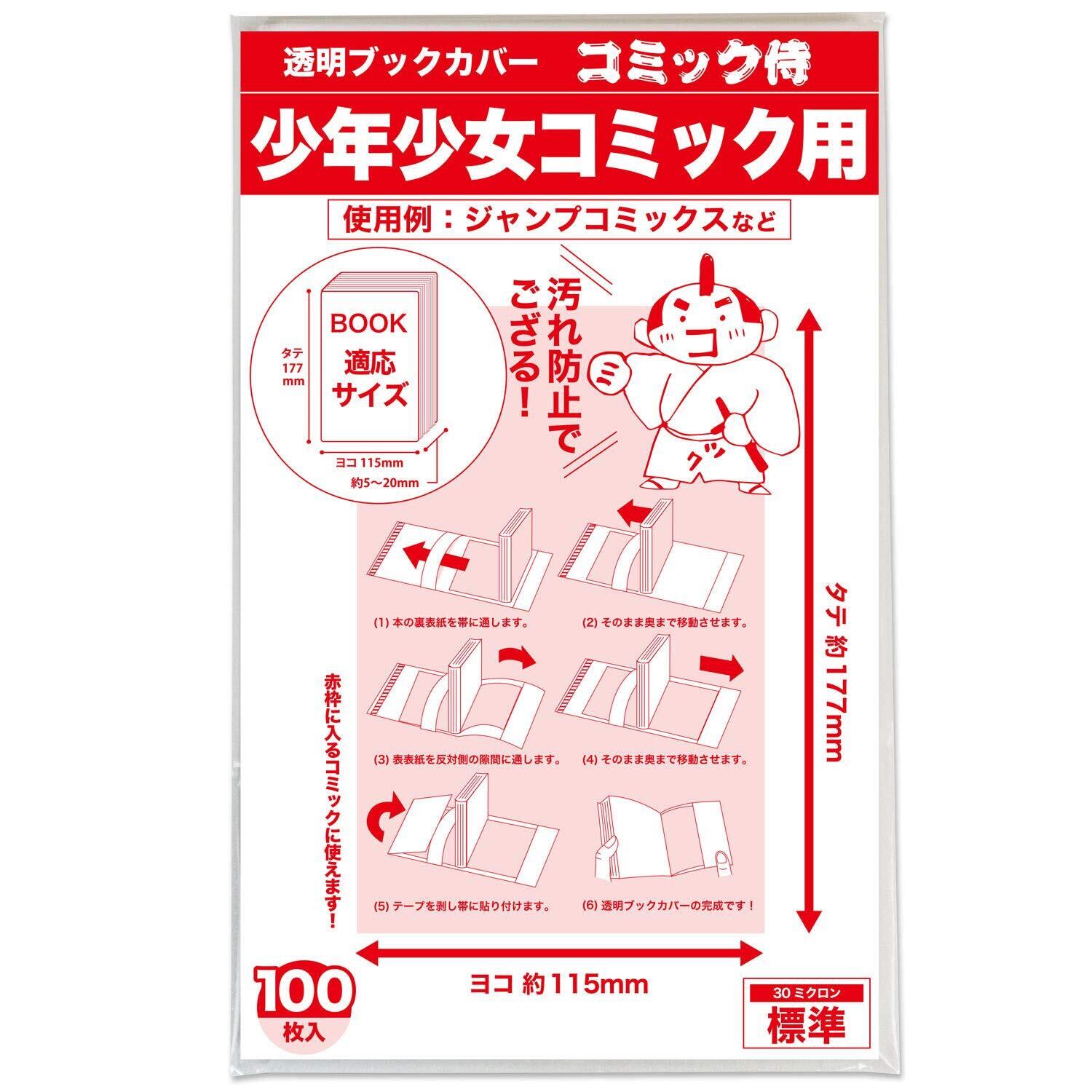 【日本製】コミック侍 透明ブックカバー【新書判 少年少女コミック用】100枚