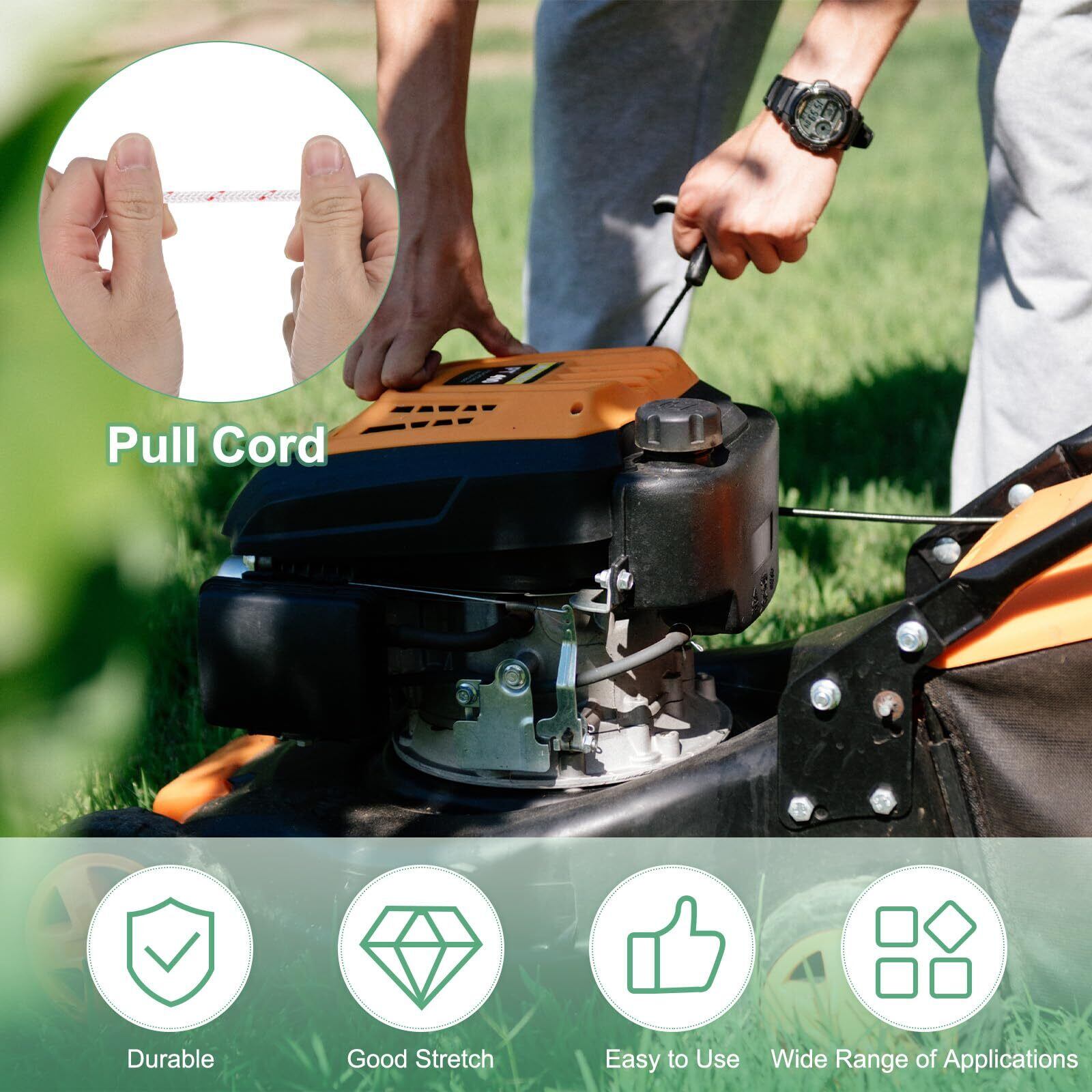 [利点]必要に応じて切断できます。より便利に使用できます。古くなった壊れたスターターロープを交換し、機器の始動を易くなります。
