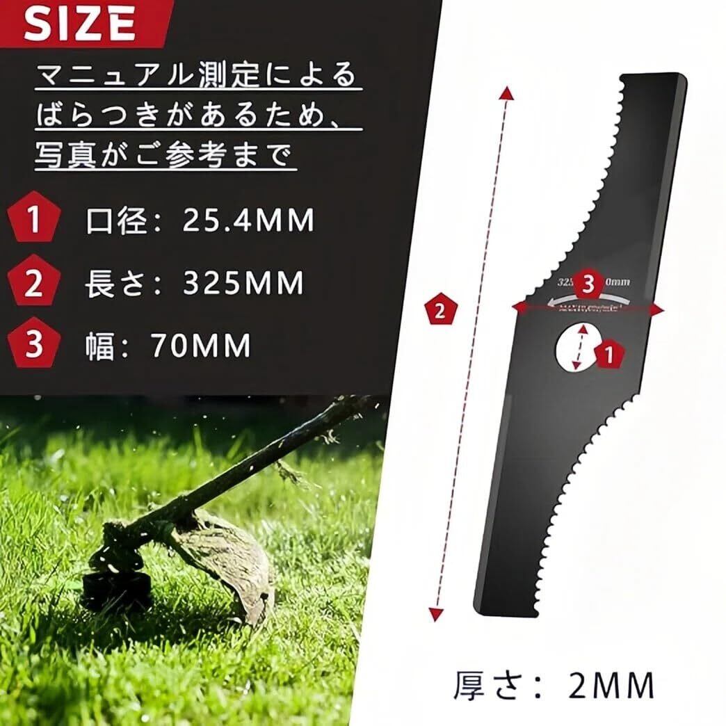 草刈り機 替え刃 2枚刃 325mm 草刈り機の刃 シュレッダーブレード かりばらい機刃 内穴25.4mm マンガン鋼 芝刈り機の付属品 2枚入り