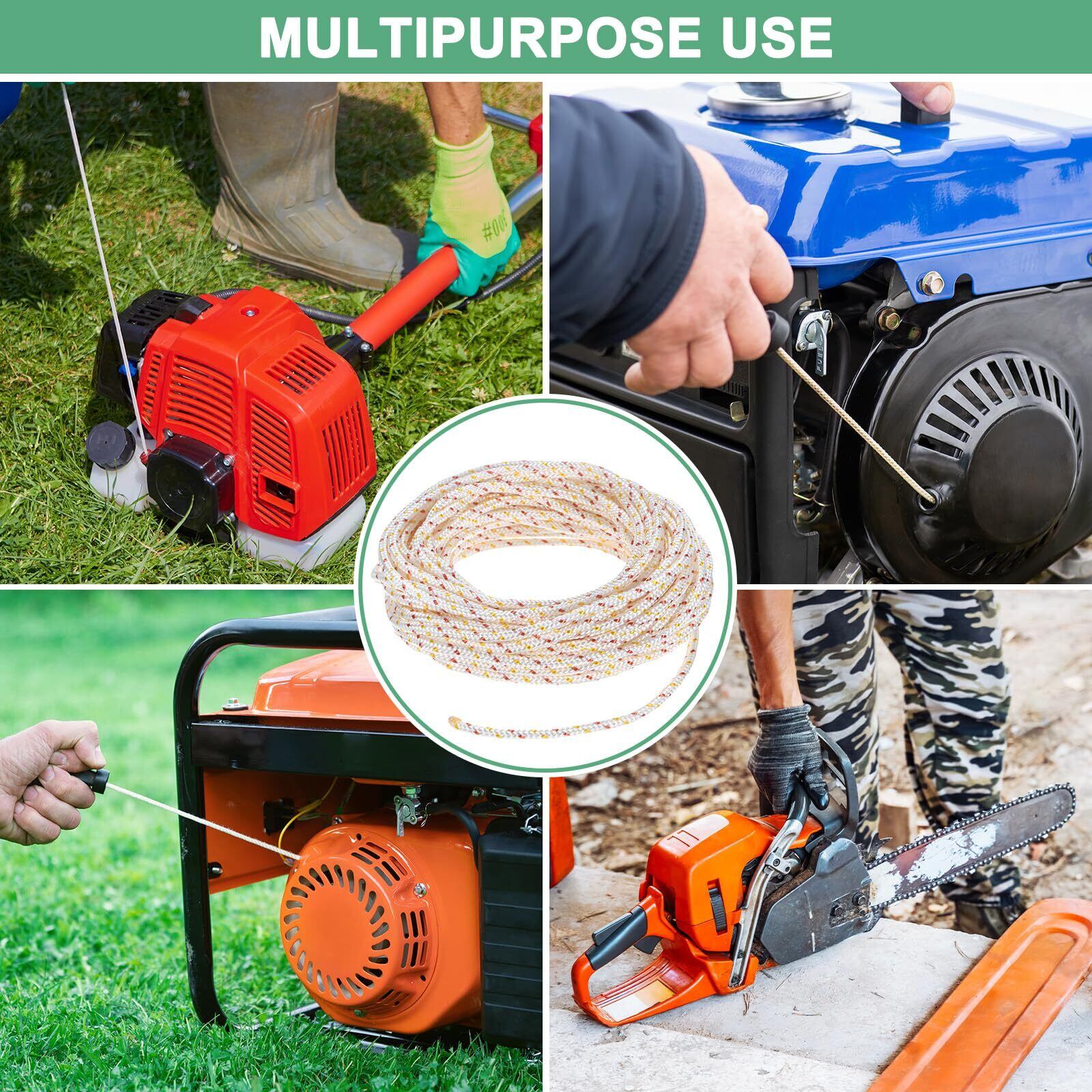 この芝刈り機用プルコードはさまざまな用途に対応しています。ガソリンエンジン式芝刈り機、ストリングトリマー、ヘッジトリマー、チェーンソー、芝エッジャー、ウォーターポンプ、スノーブロワー、ミニ耕運機、耕耘機、ログスプリッター、チッパーシュレッダー、高圧洗浄機などに使用できます。